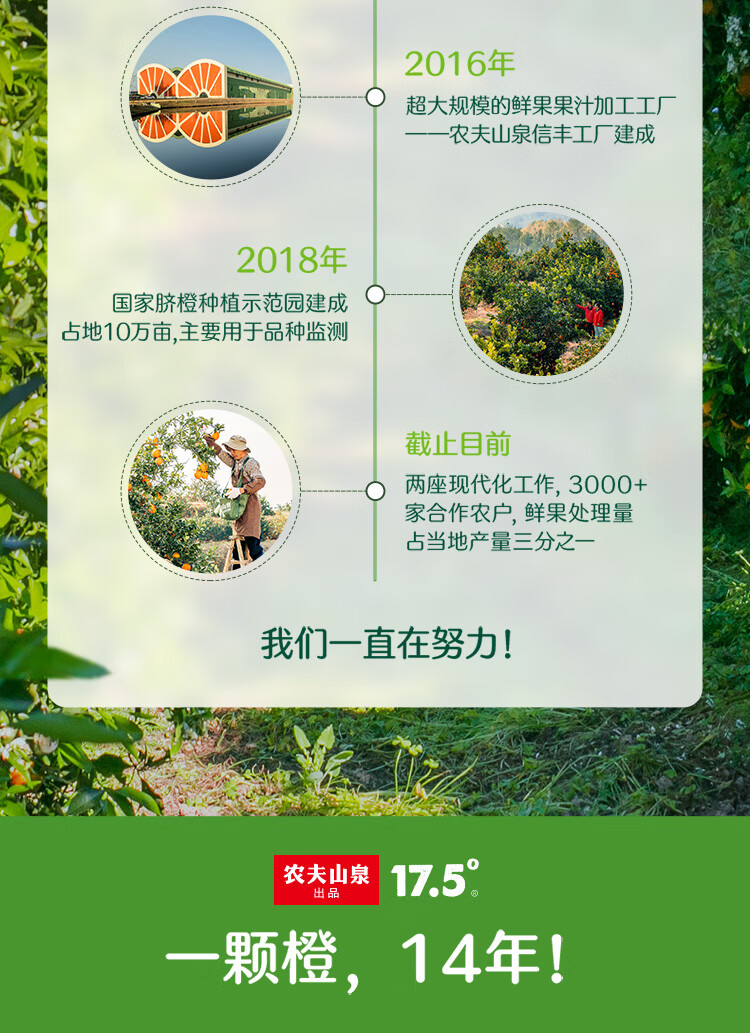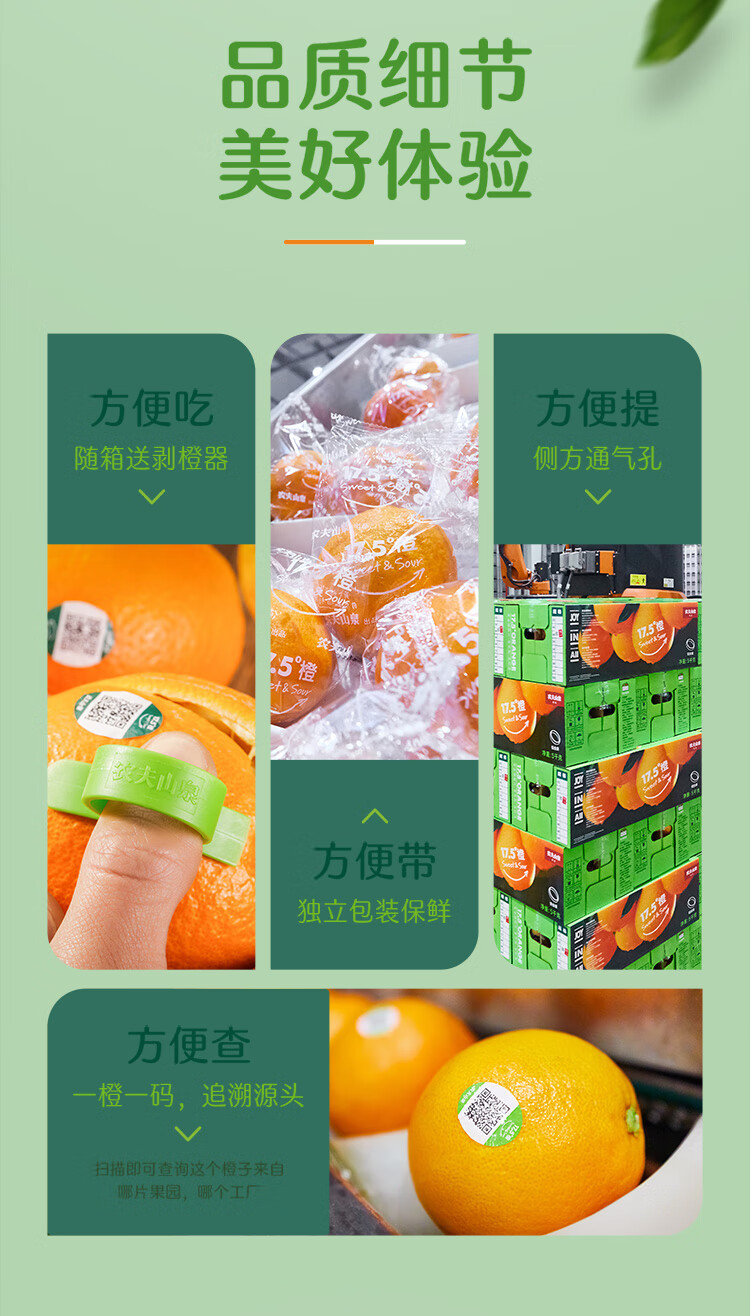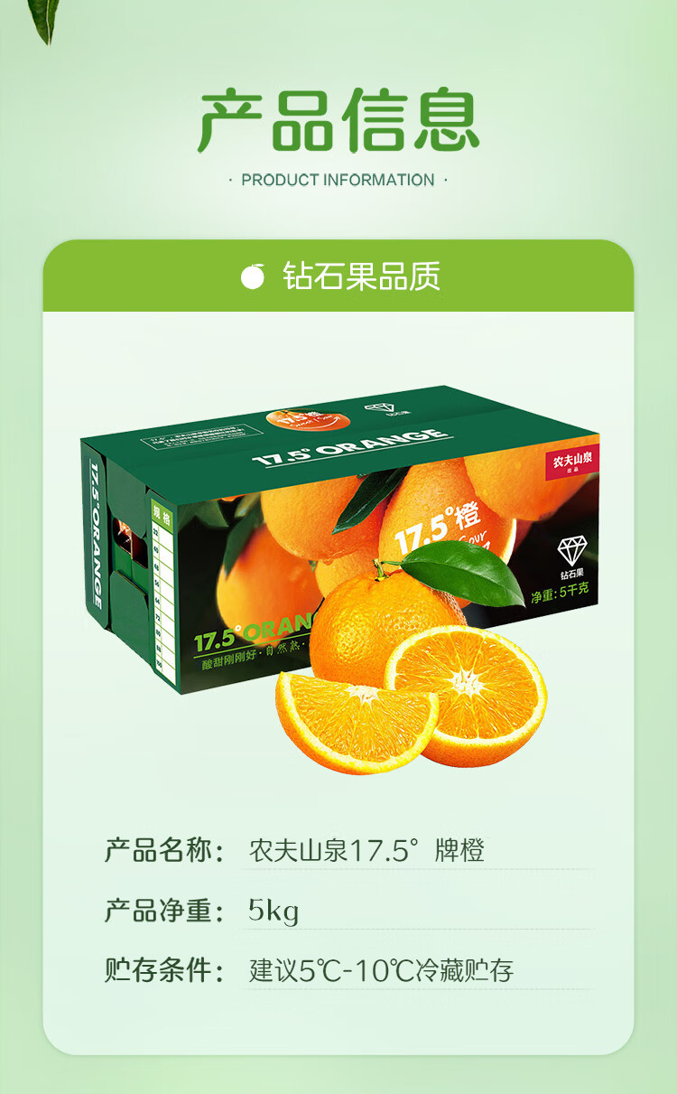 农夫山泉 17.5°橙 脐橙 5kg装 钻石果 生鲜水果 年活礼盒
