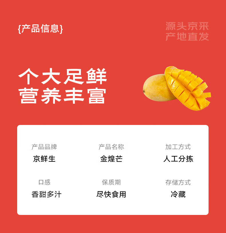 京鲜生 海南金煌芒8斤 单果350g+ 芒果 生鲜新鲜水果 源头直发包邮