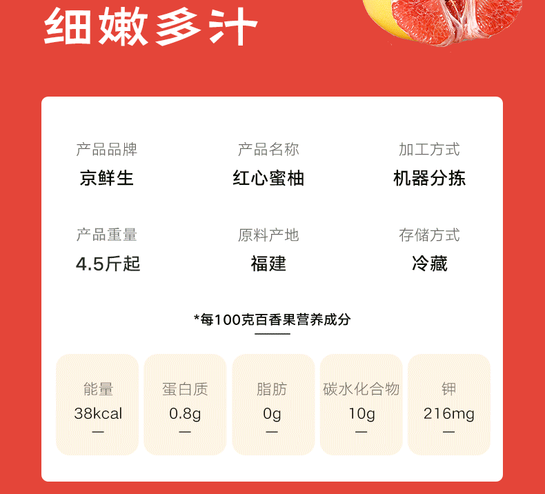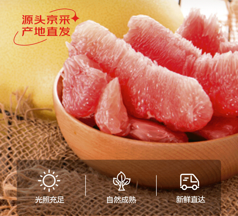 京鲜生 福建琯溪红心蜜柚 2粒装 4.5-5斤 源头直发 包邮