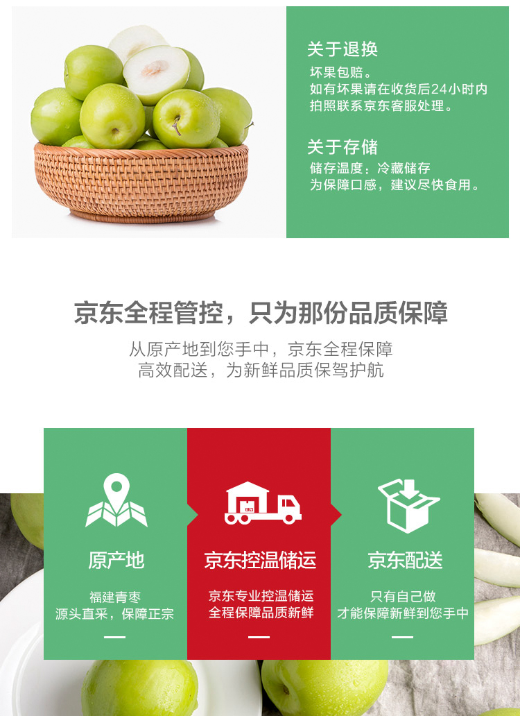 京鲜生 福建牛奶青枣 净重4斤 单果60-90g 新鲜水果