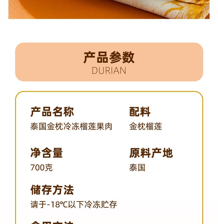 京鲜生泰国金枕冷冻榴莲果肉700g