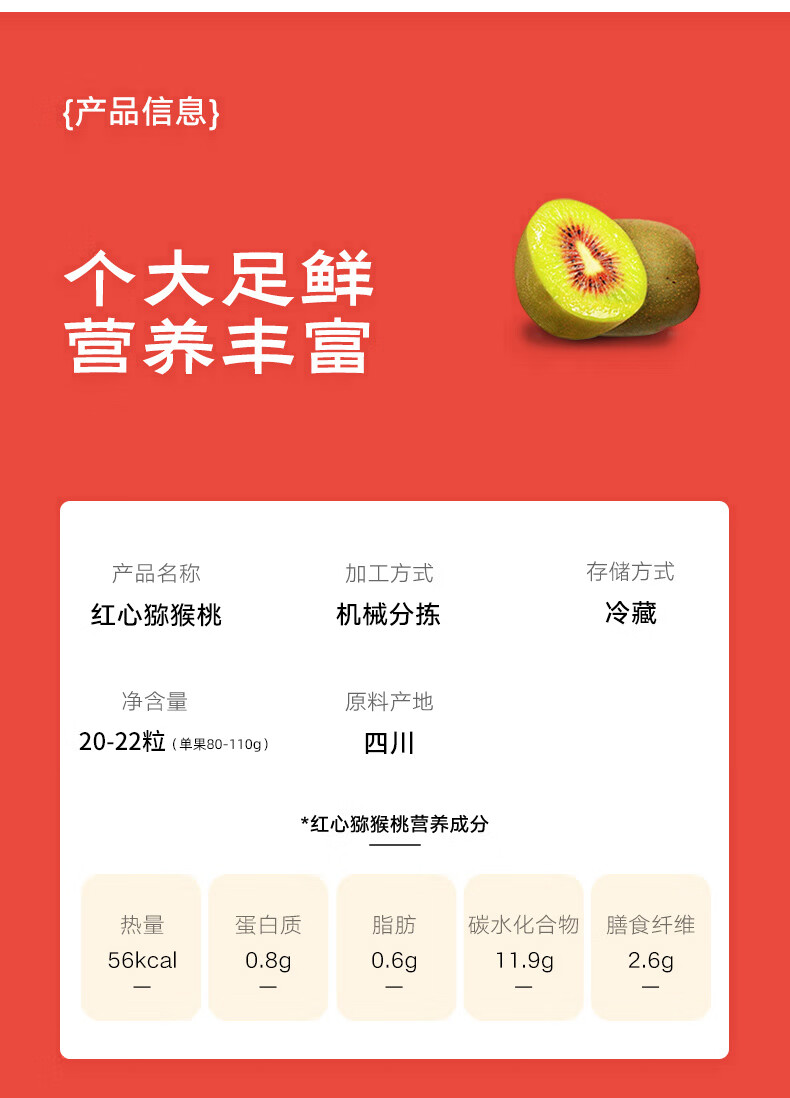 珍享 四川红心猕猴桃/奇异果 20-22粒 单果约80-110g 新鲜水果