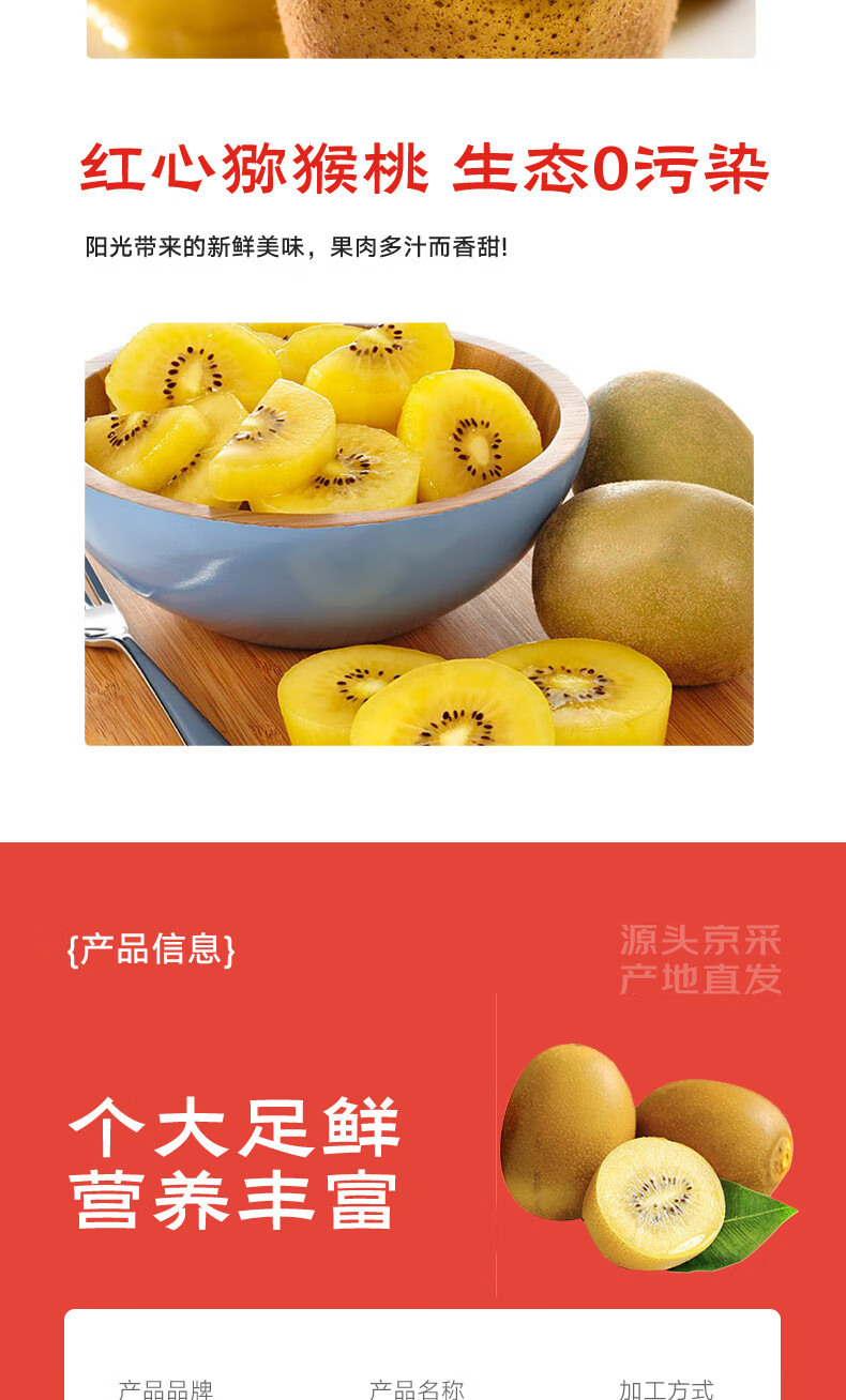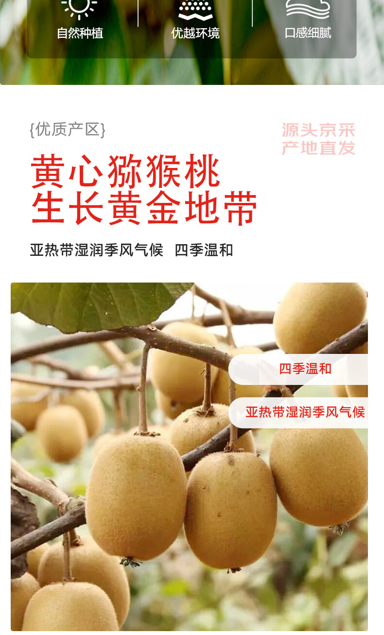 京觅 四川黄心猕猴桃奇异果24粒单果90-110g 彩箱装生鲜源头直发包邮
