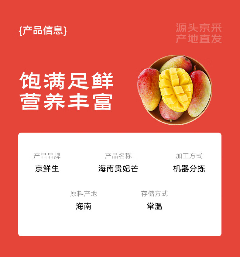 京鲜生 【即食】海南贵妃芒果(单果80g+)500g
