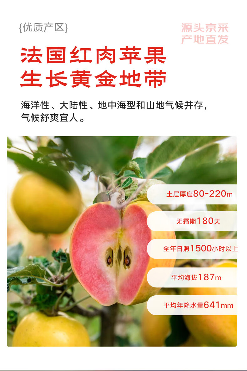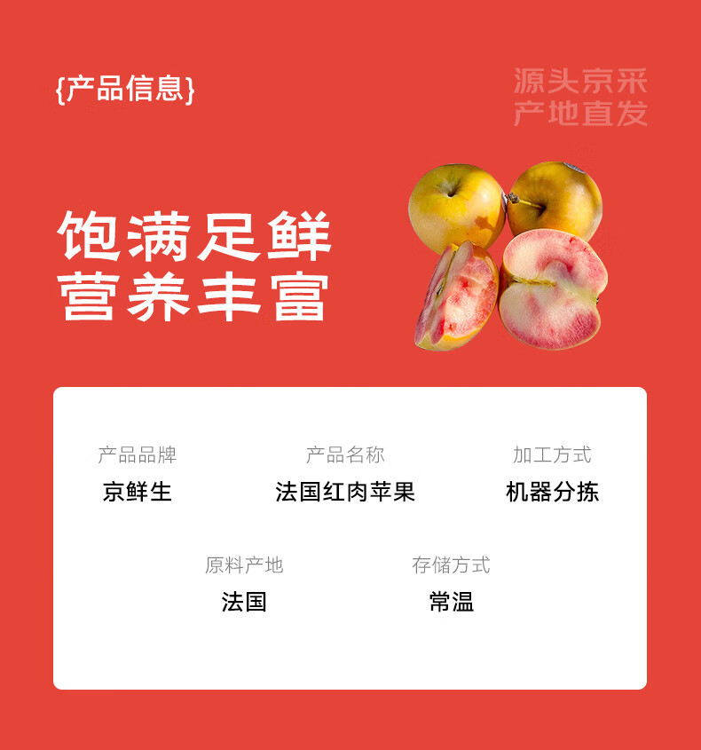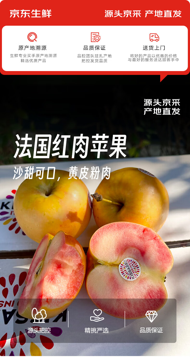 京鲜生 法国红肉苹果 2粒360g+ 生鲜时令水果苹果
