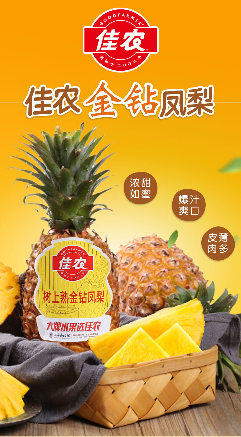 佳农海南金钻凤梨1粒 净重1.1kg起 新鲜水果