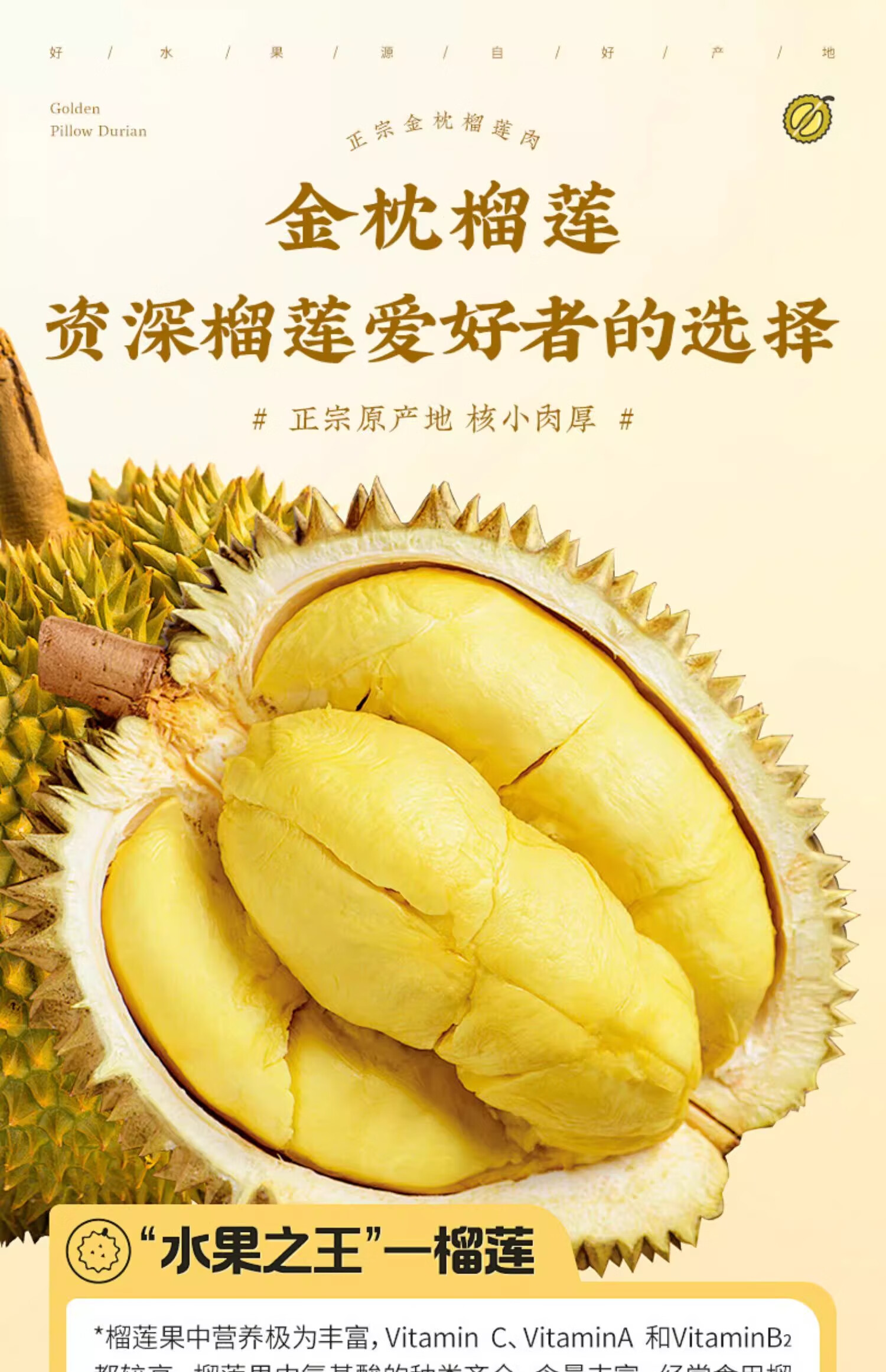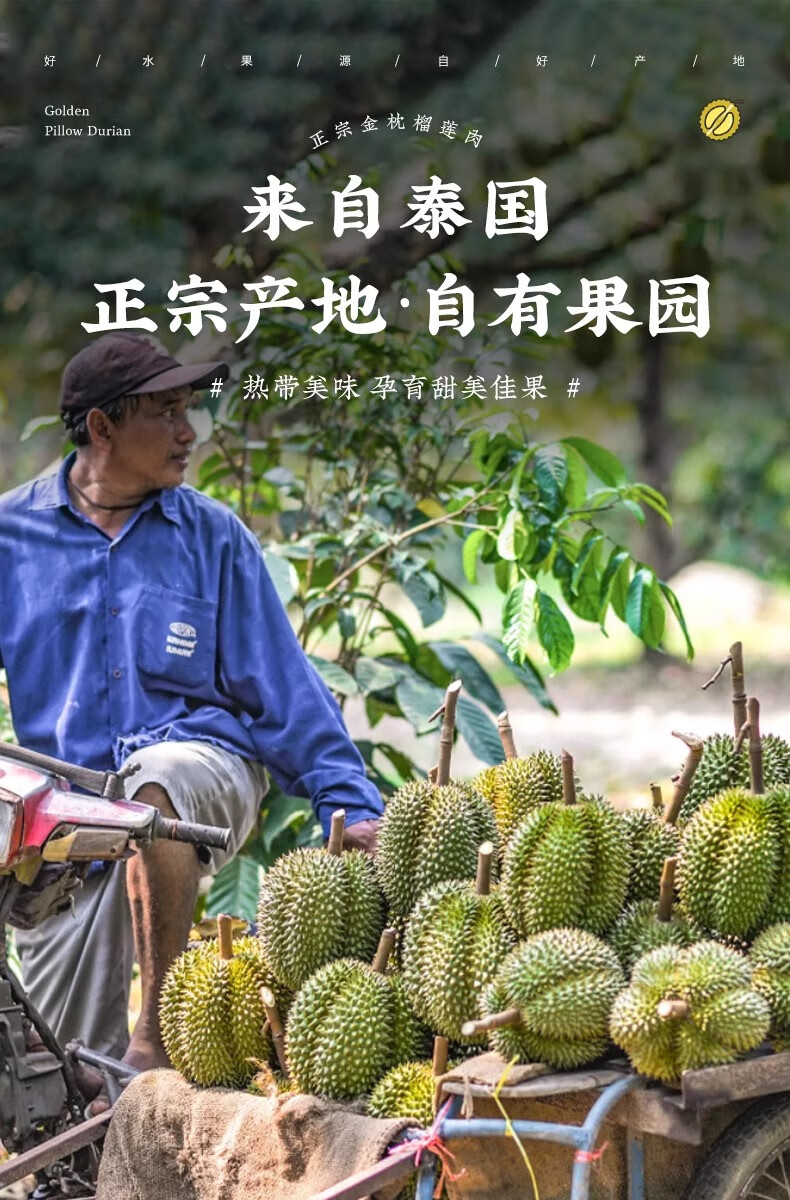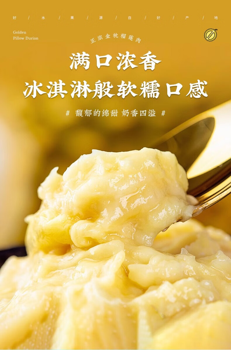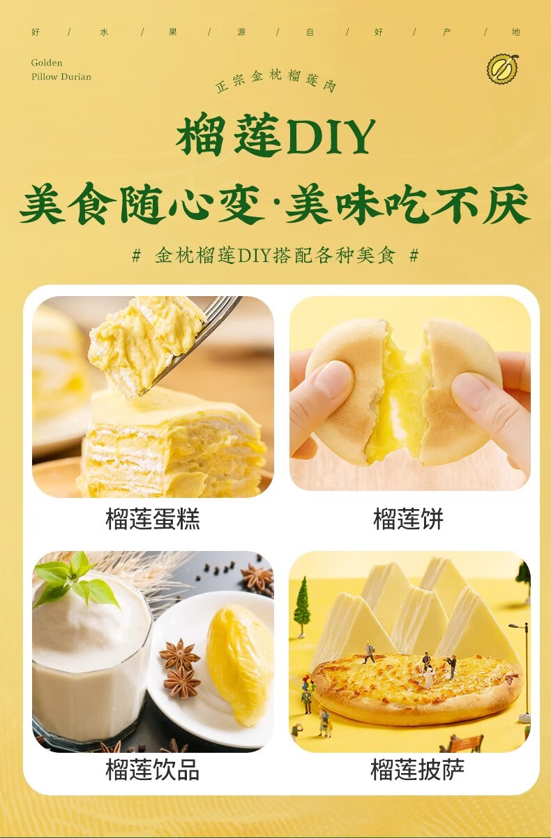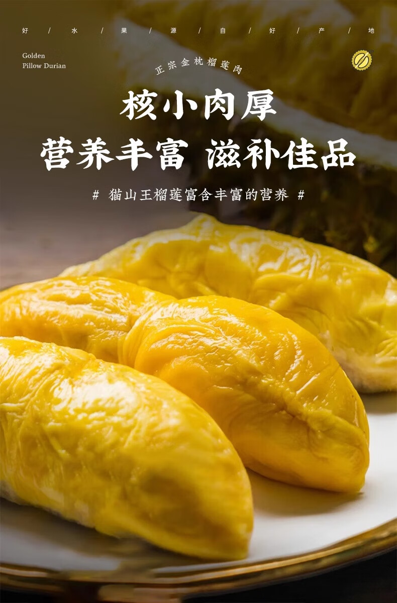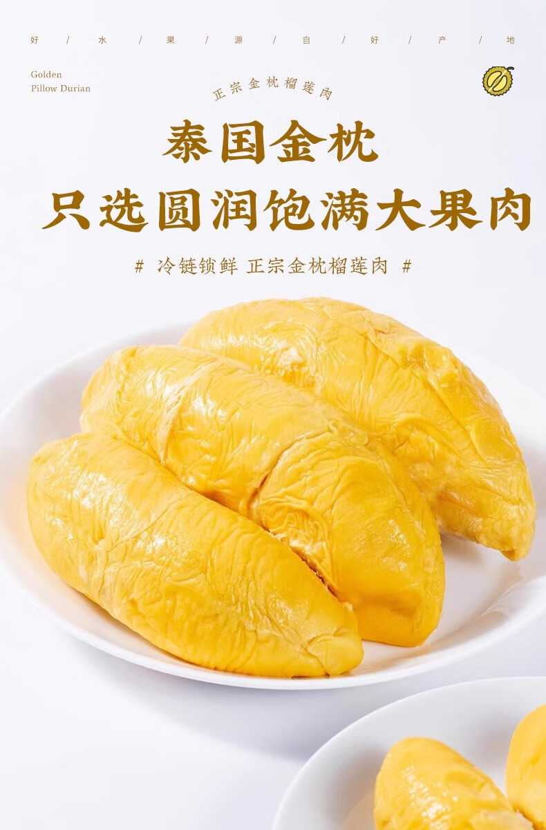 菲农泰国纯A金枕榴莲肉2盒 800g 生鲜水果