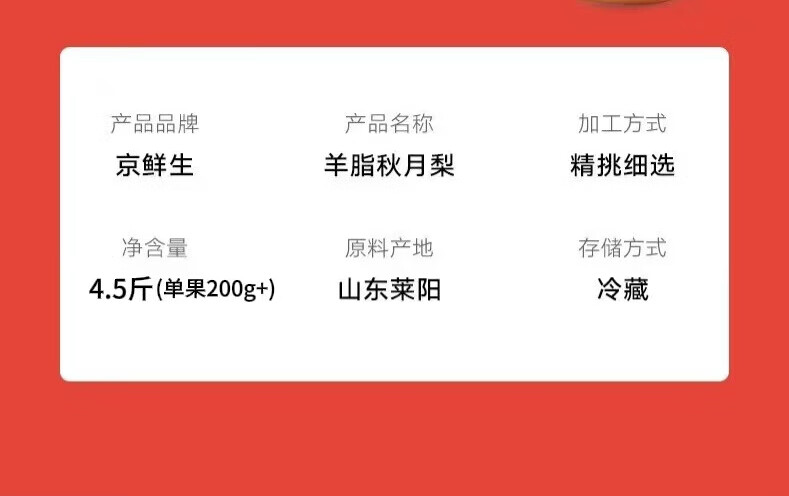 京鲜生 莱阳羊脂秋月梨 净重5斤 单果260g+ 源头直发 包邮