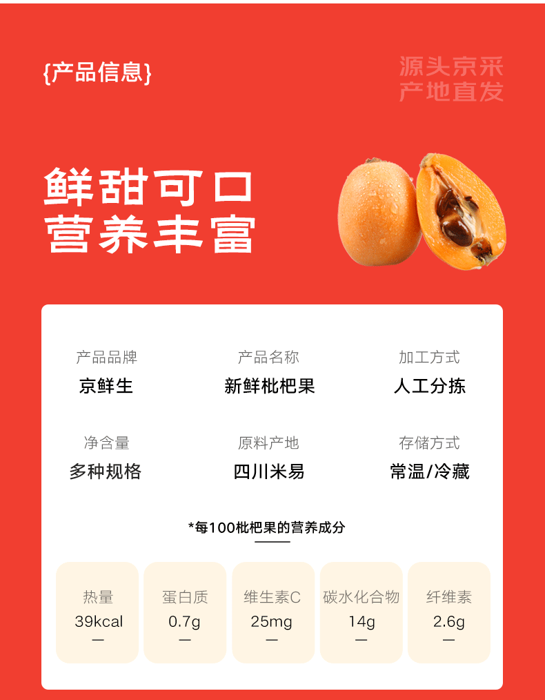 京鲜生 四川米易老树枇杷 净重5斤 单果35g+ 生鲜水果源头直发