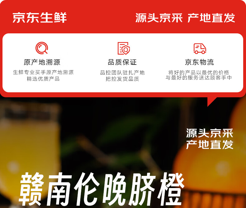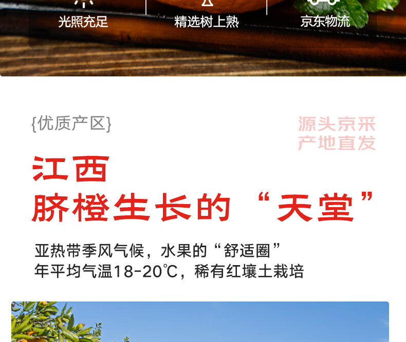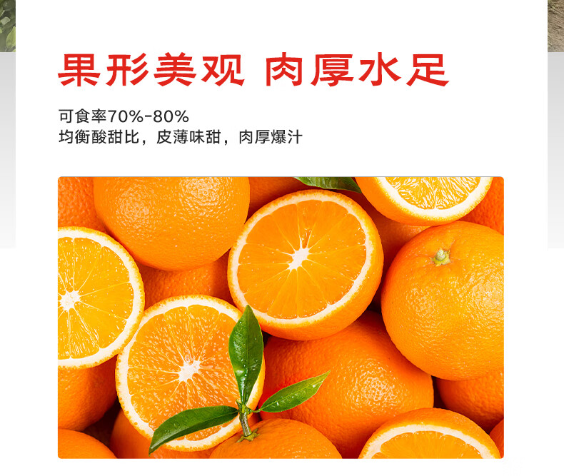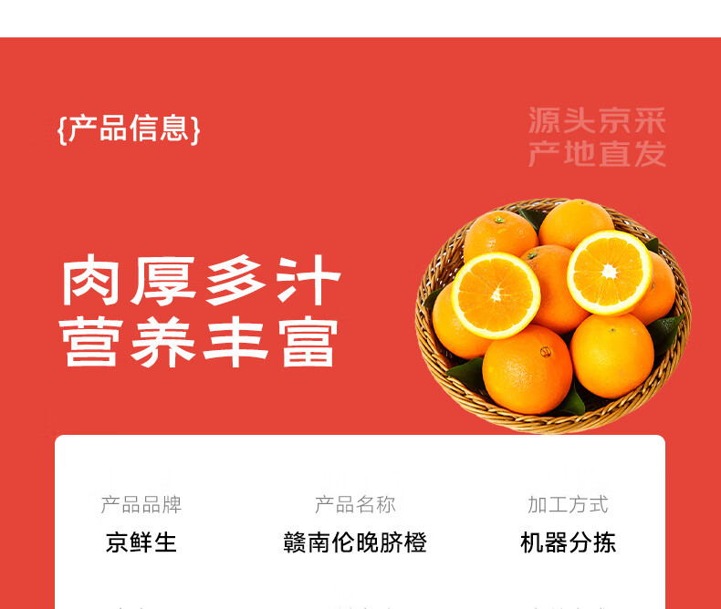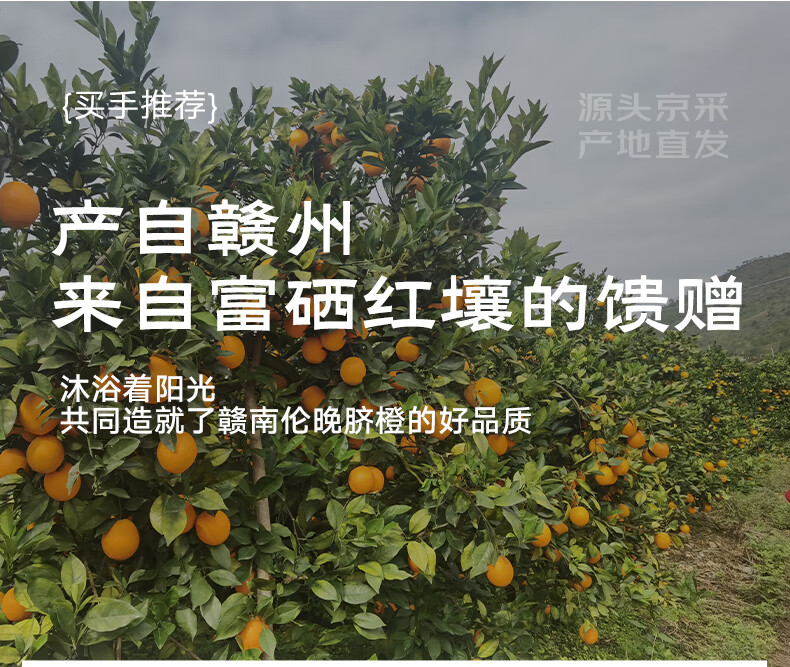 京鲜生 赣南伦晚脐橙 铂金果 净重4.5-5斤 果径65-75mm 源头直发包邮