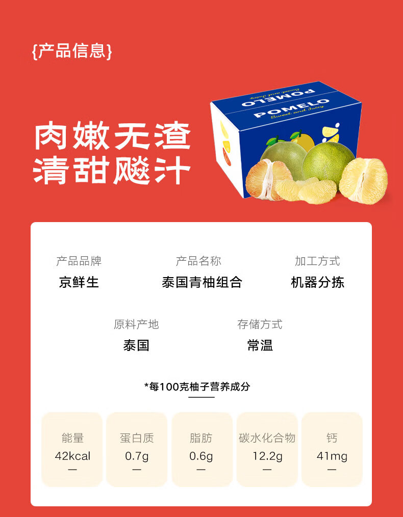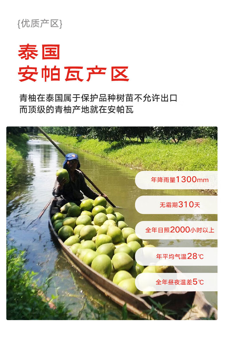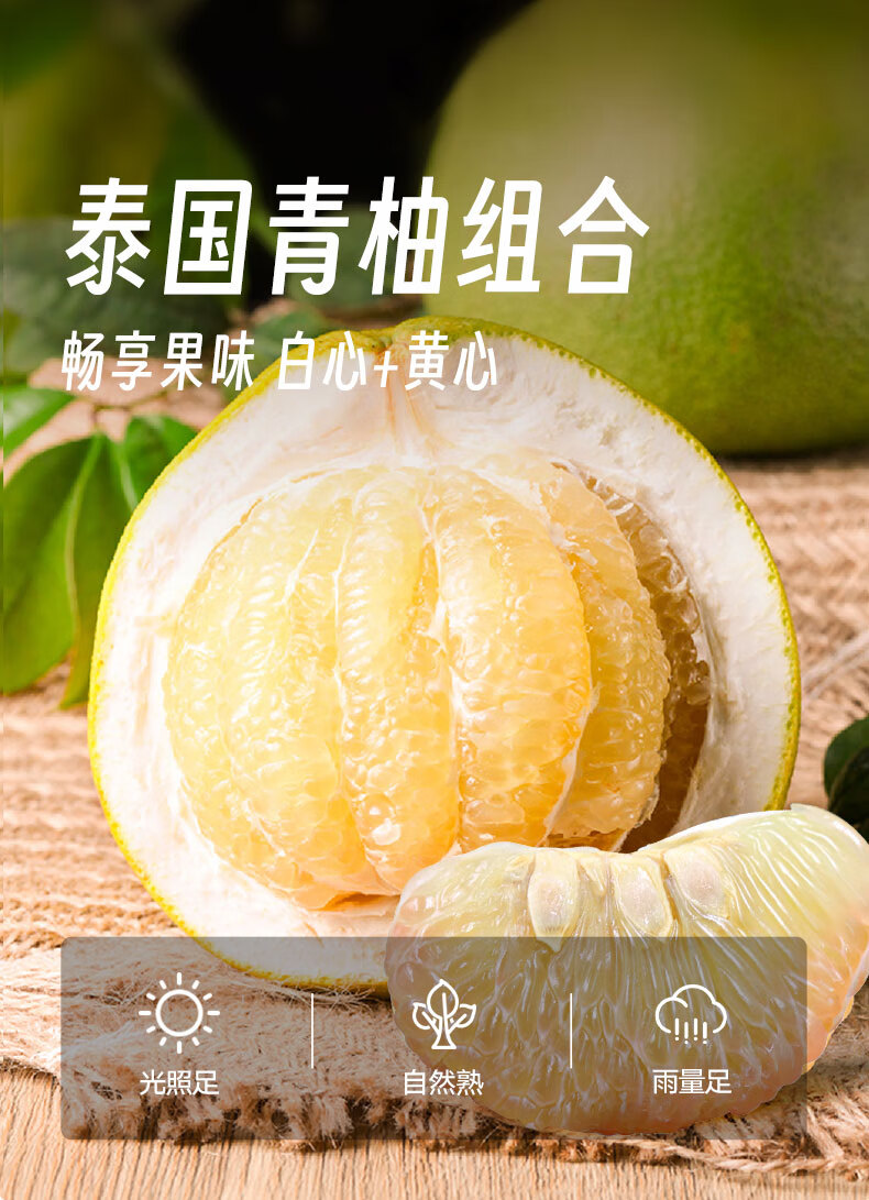 京鲜生 泰国青柚 泰柚 青皮白心蜜柚 2粒中秋礼盒 单果600g+ 源头直发