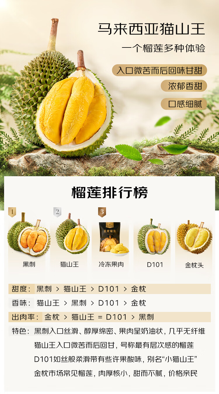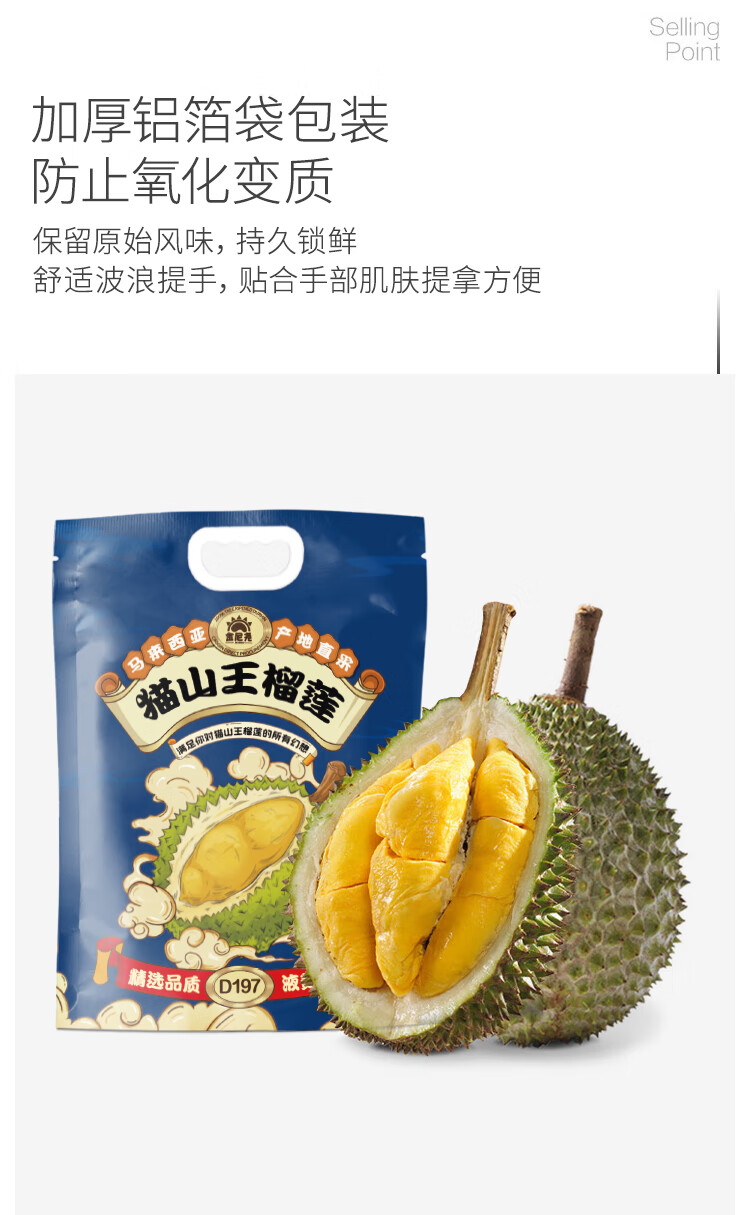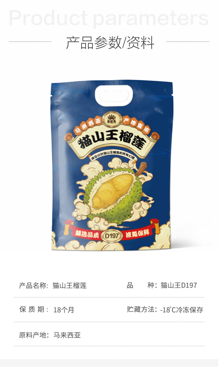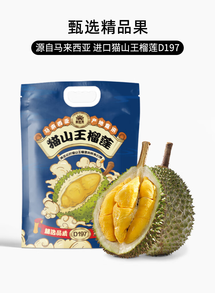 金尼尧马来西亚猫山王冷冻榴莲D197整果3.0斤-3.5斤/个