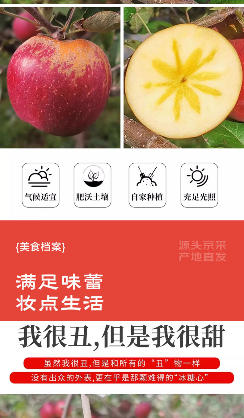 果嘉农四川大凉山盐源丑苹果 当季新鲜水果红富士脆甜冰糖心 5斤 特大果