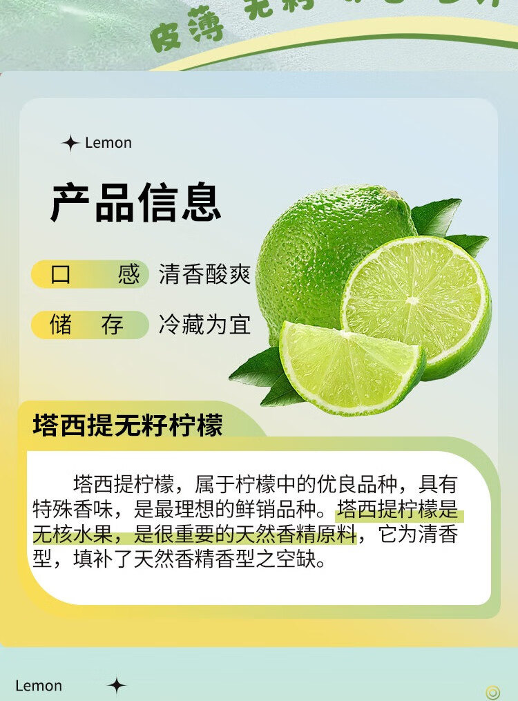 京鲜生 塔西提无籽柠檬 青柠檬 500g装 单果40-60g 新鲜水果