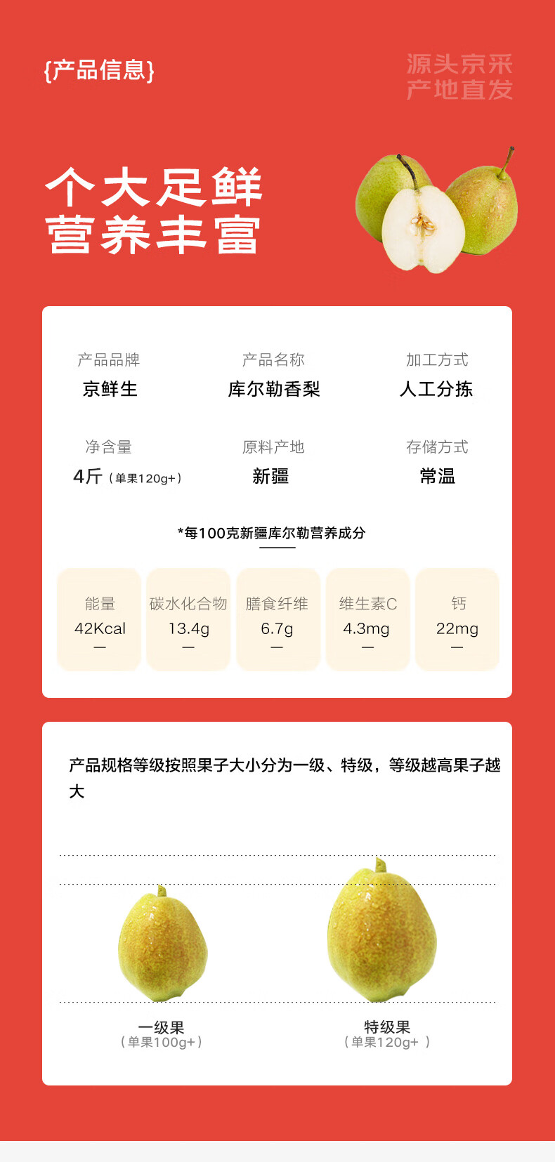 京鲜生新疆特级库尔勒香梨2kg 单果120g起 新鲜生鲜水果礼盒装 健康轻食