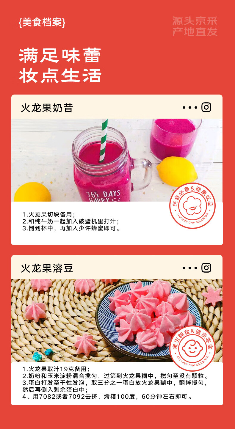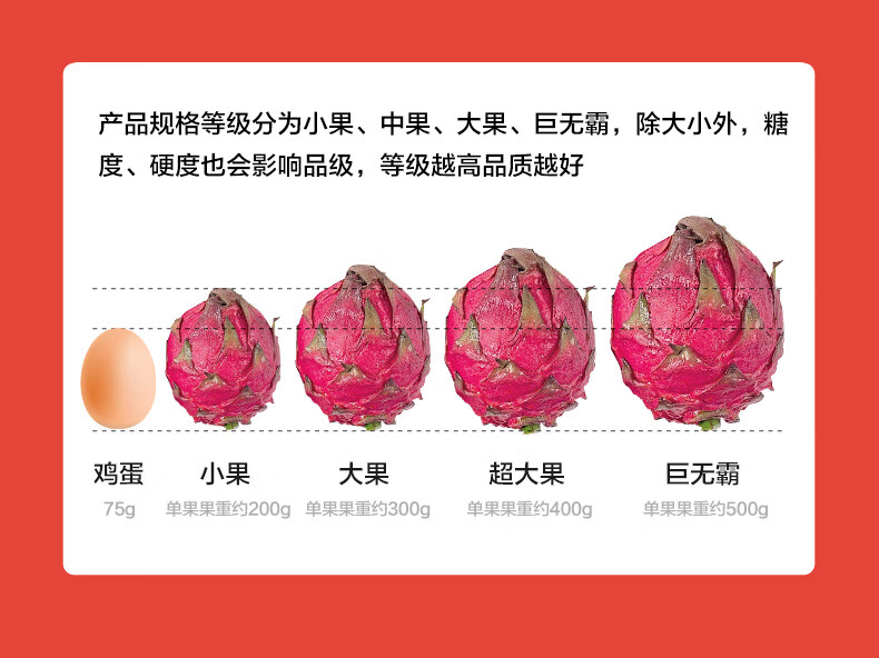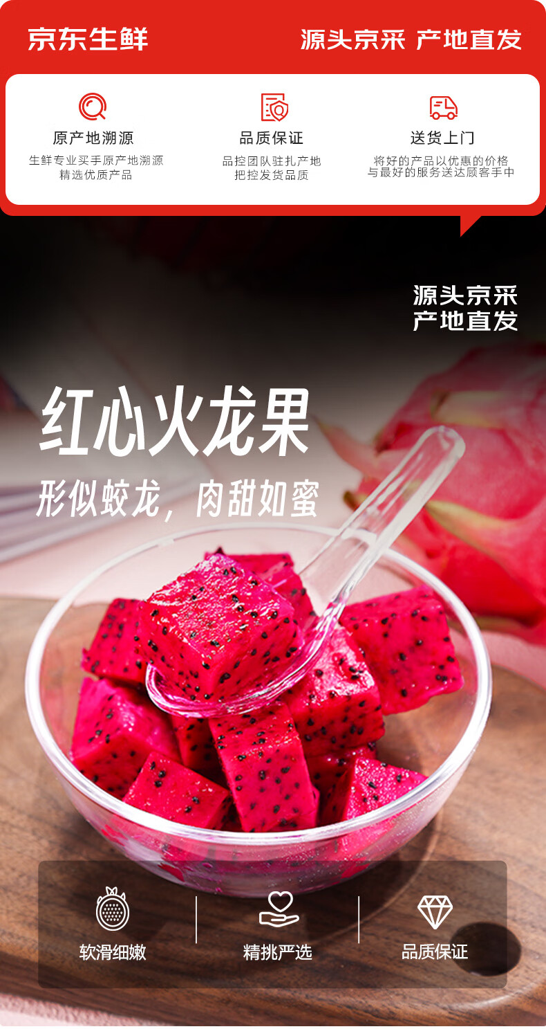 京鲜生 树上熟红心火龙果 8粒装 单果300g 精选大果 源头直发包邮