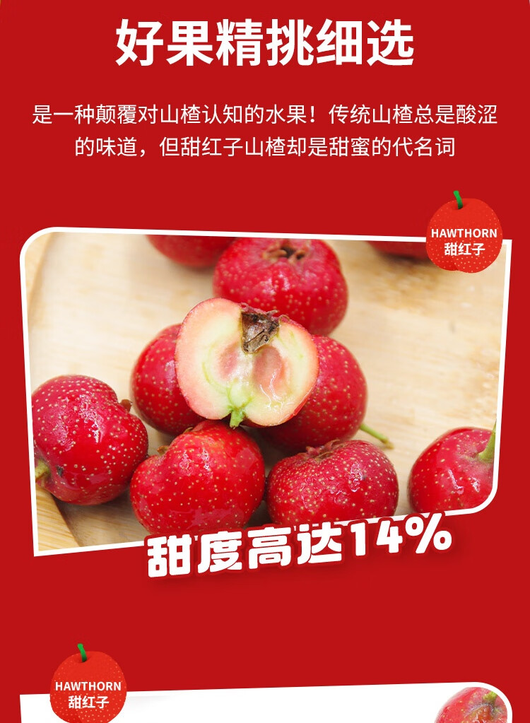 京鲜生 甜红子红山楂 糖球小山楂 300g 尝鲜装 生鲜水果