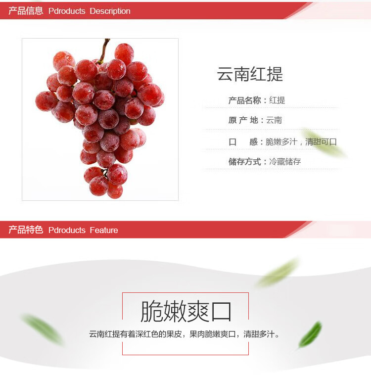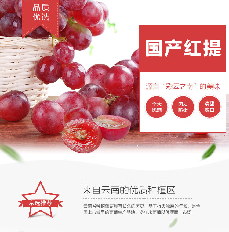 京鲜生 国产红提 葡萄 1kg装 新鲜水果 时令易掉粒