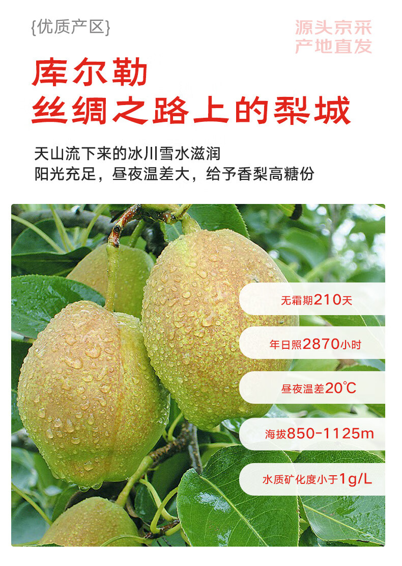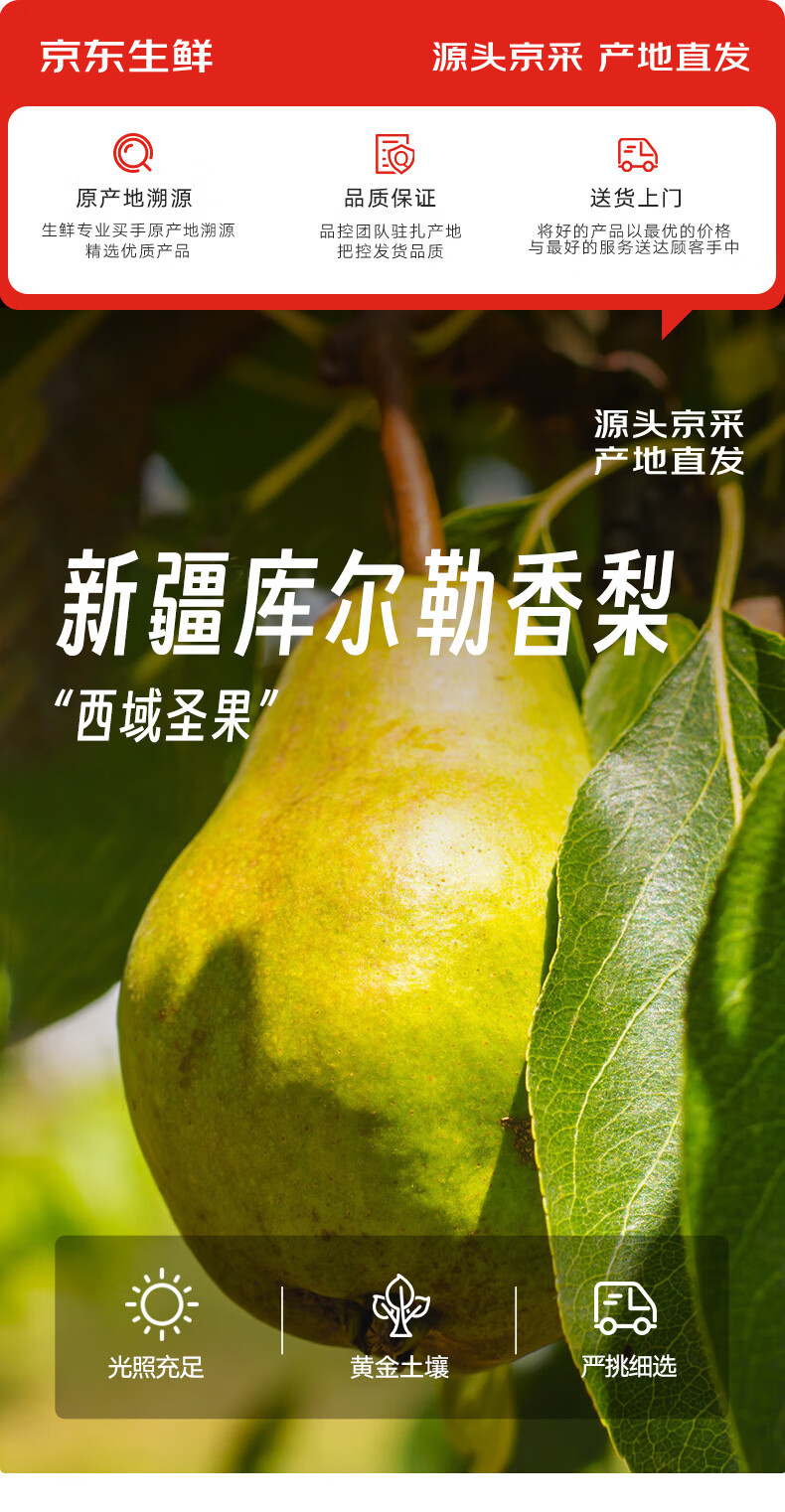 京鲜生 新疆特级库尔勒香梨4kg 单果120g起 生鲜水果