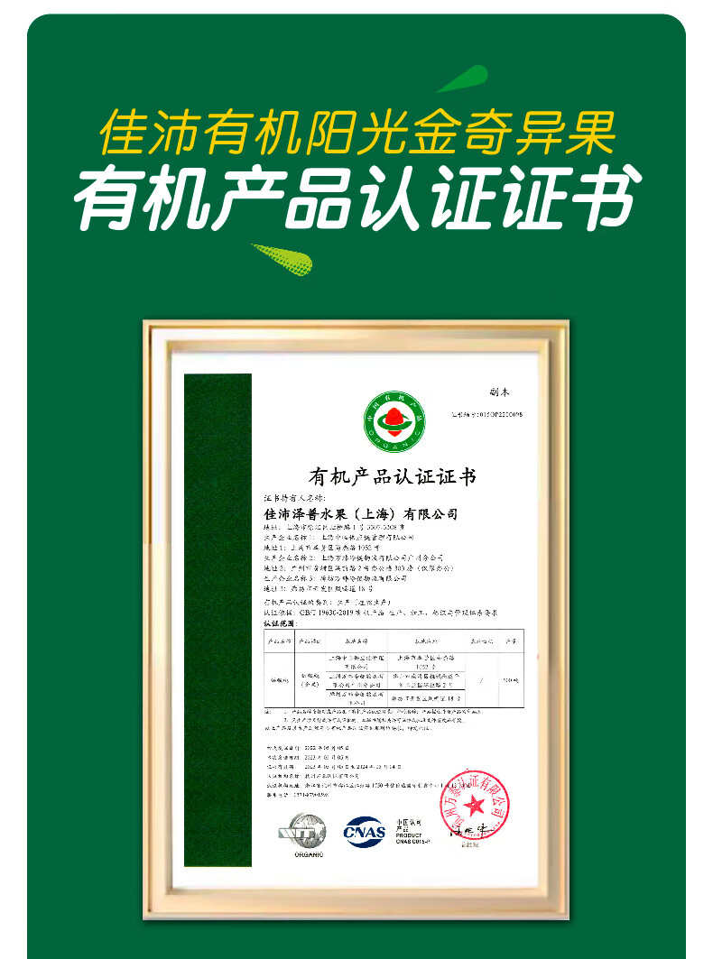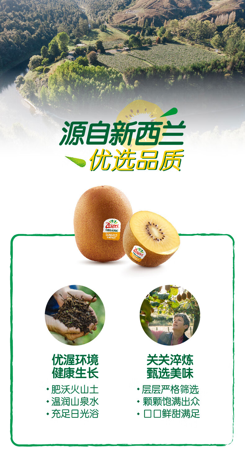 佳沛(zespri)新西兰有机金奇异果8个装优选果单果重约124-134g礼盒 源头直发