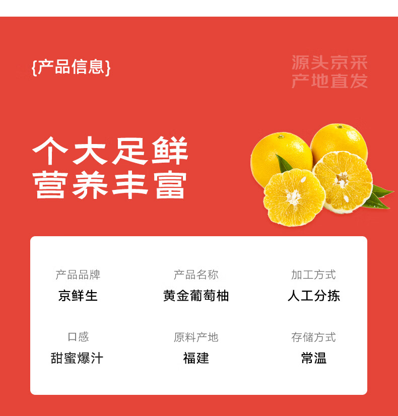 京鲜生 福建黄金葡萄柚2斤 生鲜水果柚子 源头直发 包邮