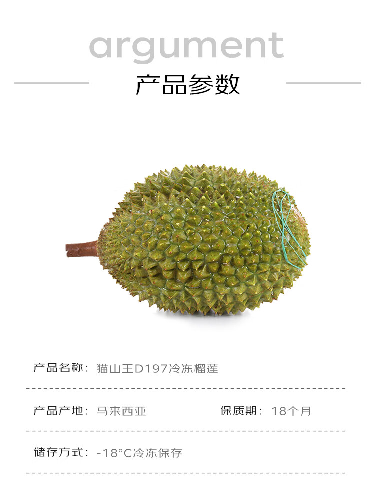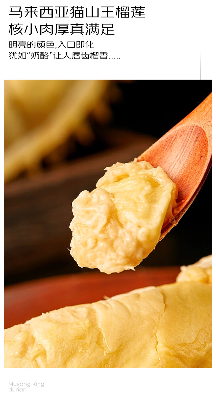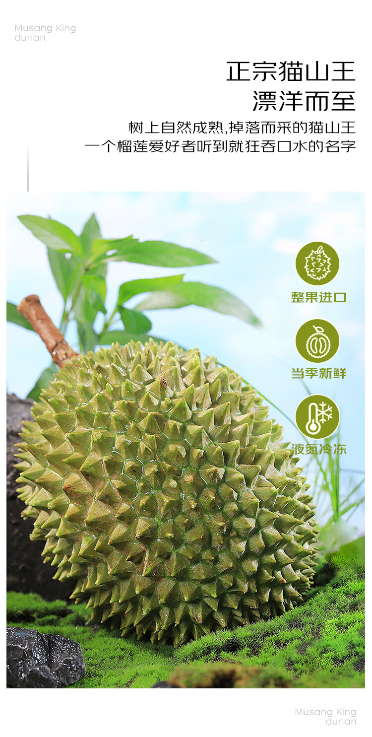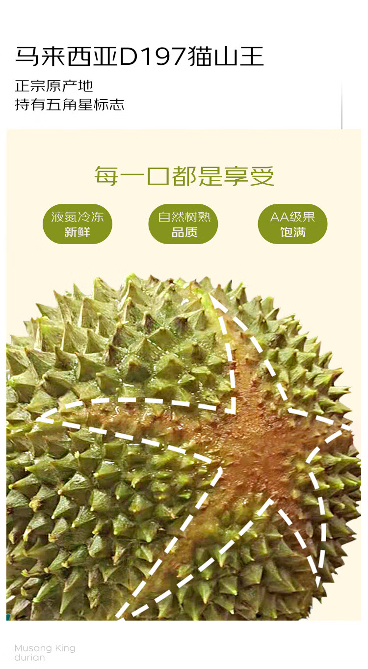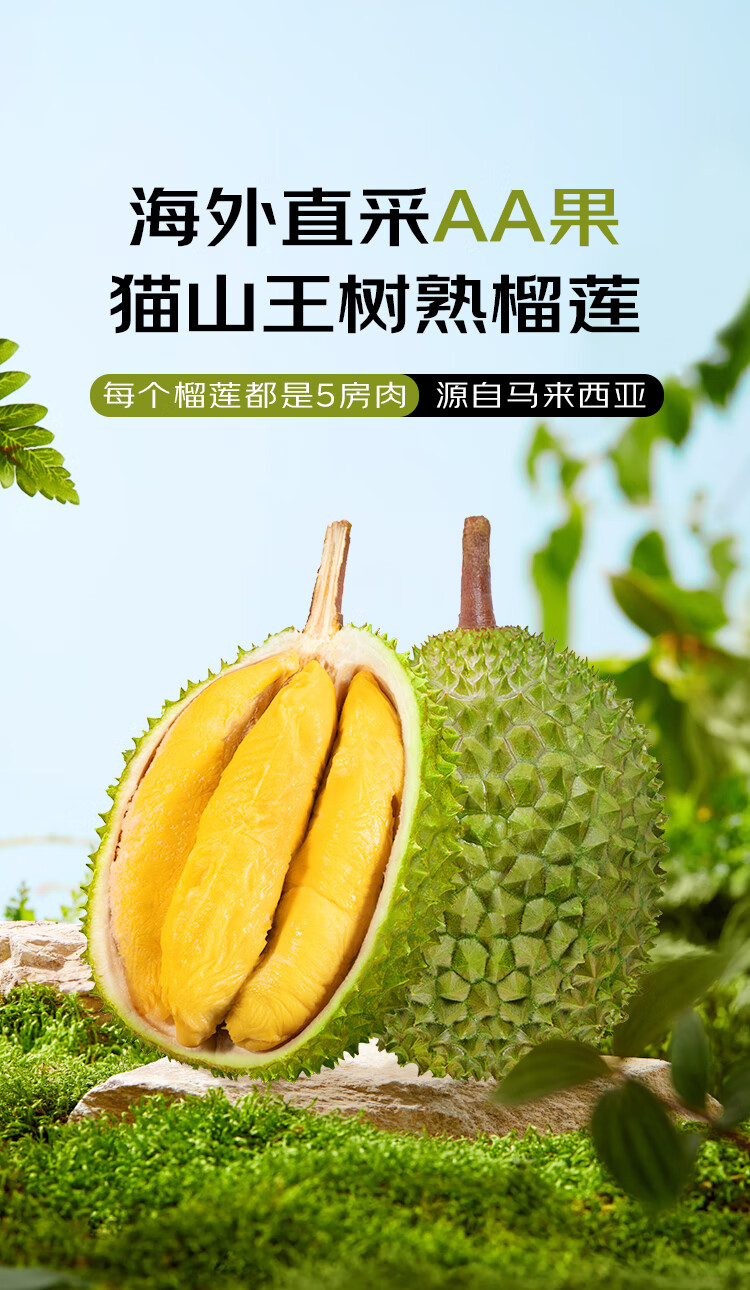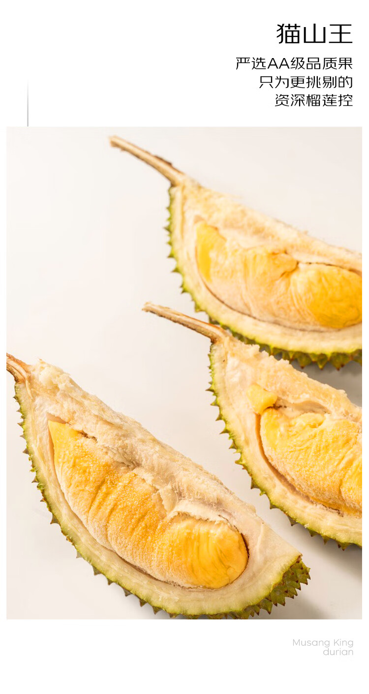 京鲜生马来西亚猫山王冷冻榴莲 AA级整果 保5房肉 3-3.5斤 生鲜水果
