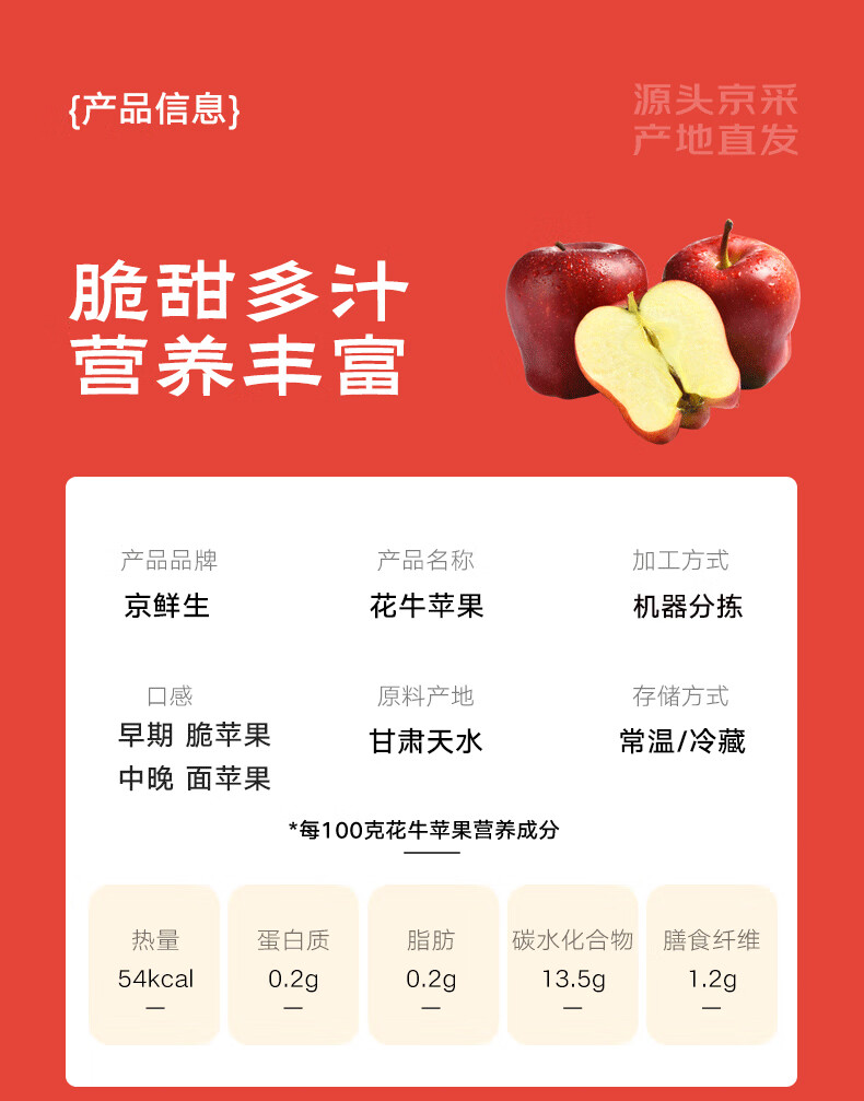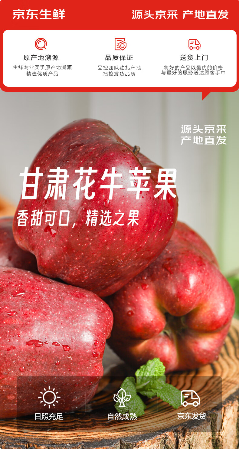 京鲜生甘肃天水花牛苹果又大又红 净重4斤 单果140g+ 生鲜水果源头直发