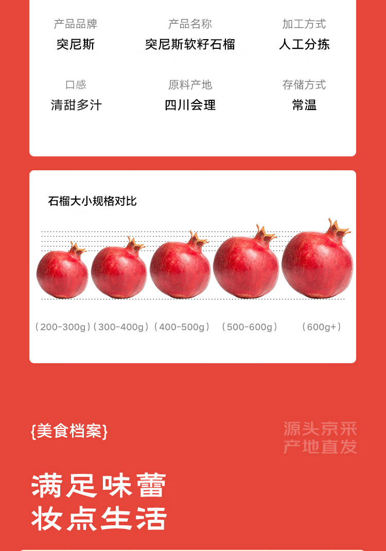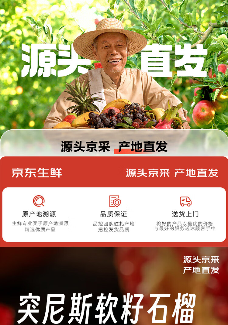 京鲜生 突尼斯软籽石榴4.5斤装 单果300-400g 生鲜水果 源头直发包邮