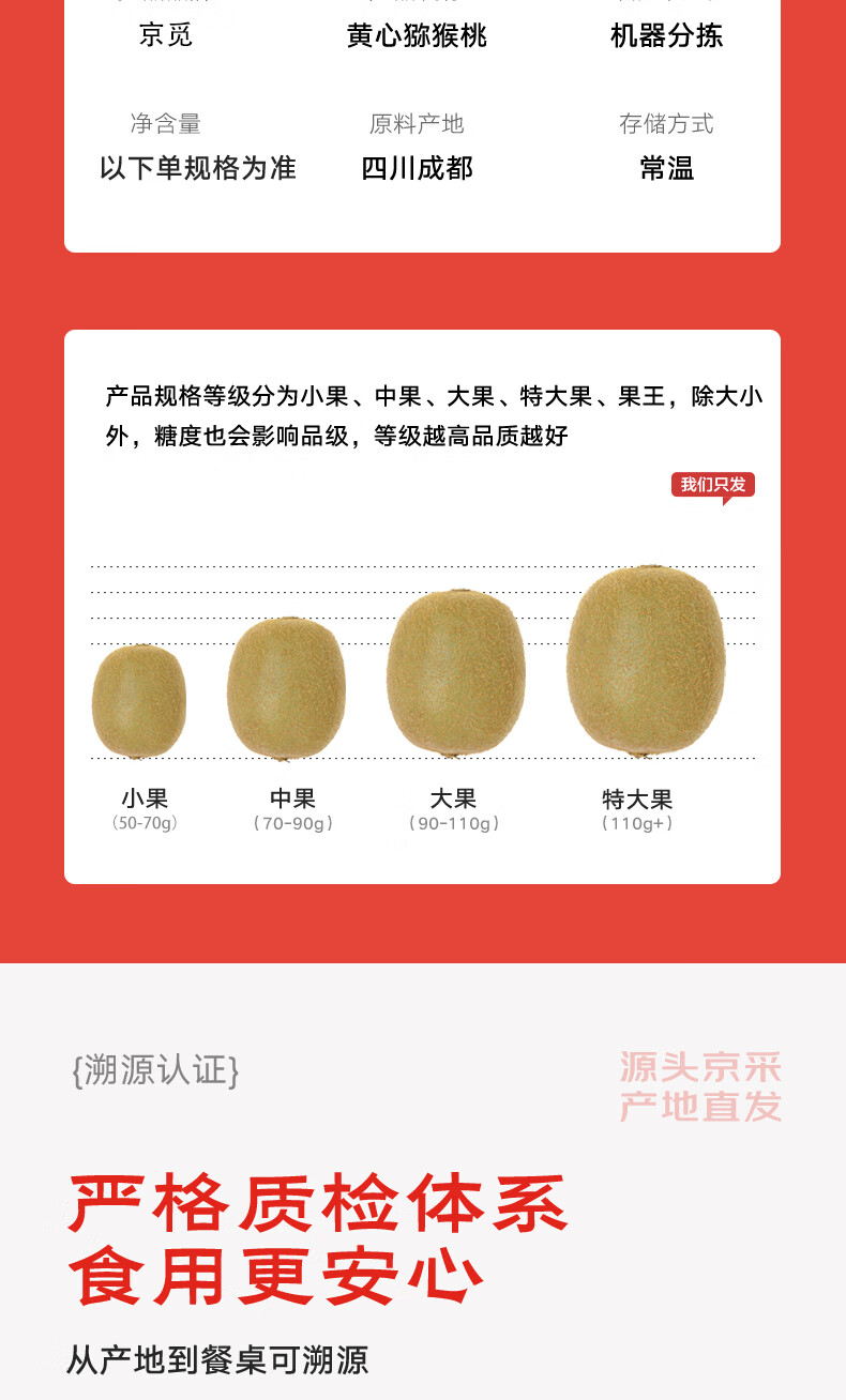京觅 四川黄心猕猴桃奇异果24粒单果90-110g 礼盒装生鲜源头直发包邮
