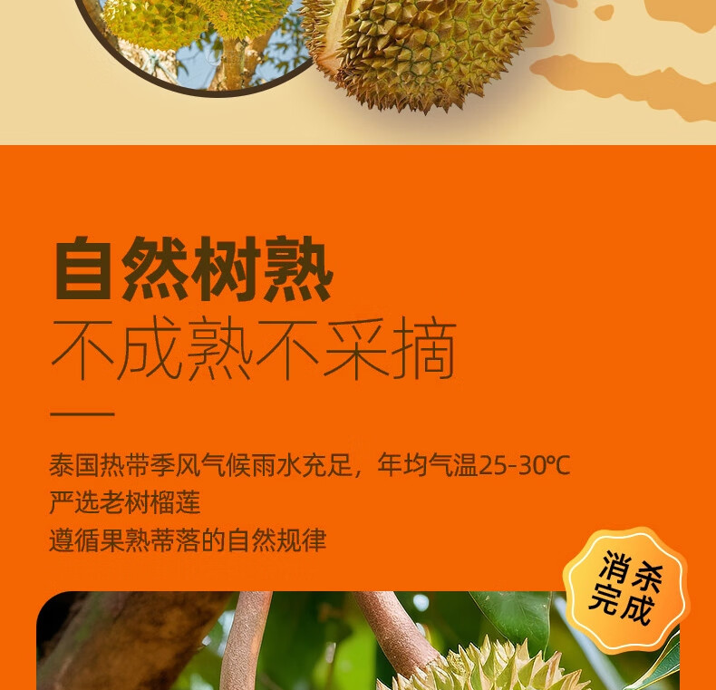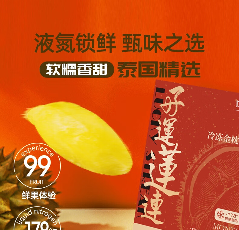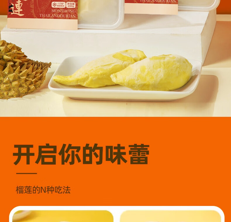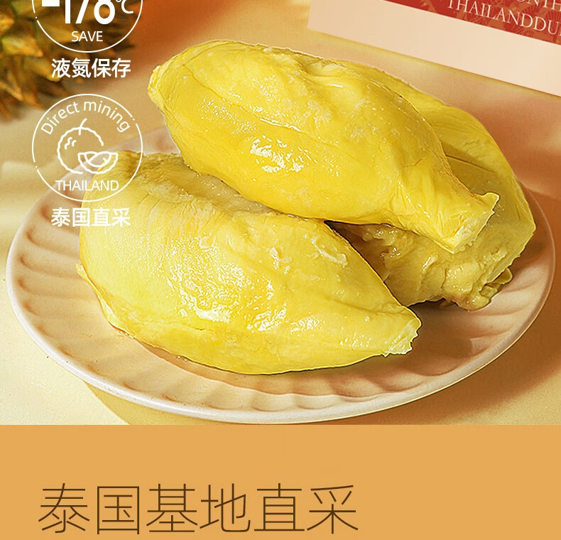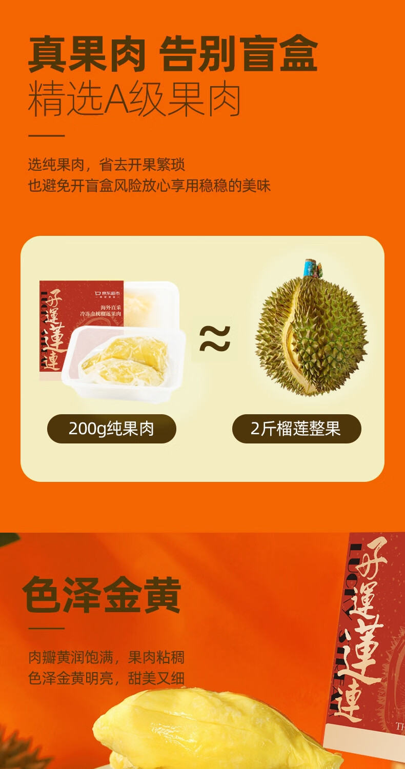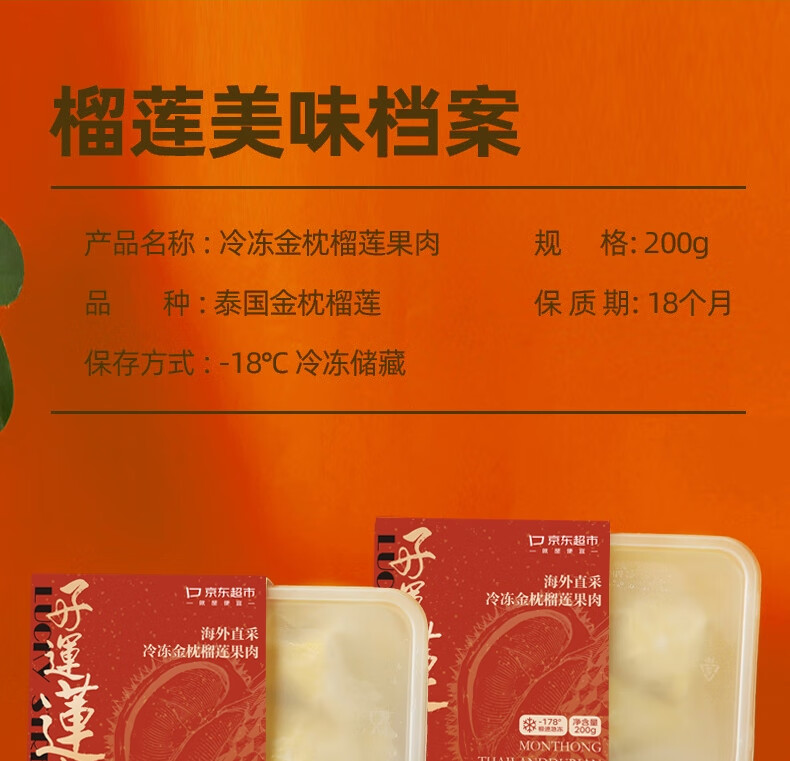 京鲜生泰国金枕头冷冻榴莲肉200g装 冷冻榴莲