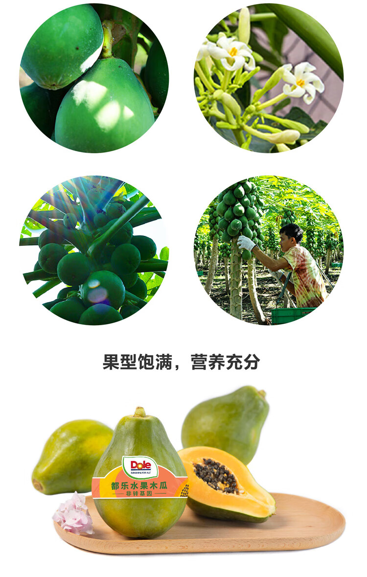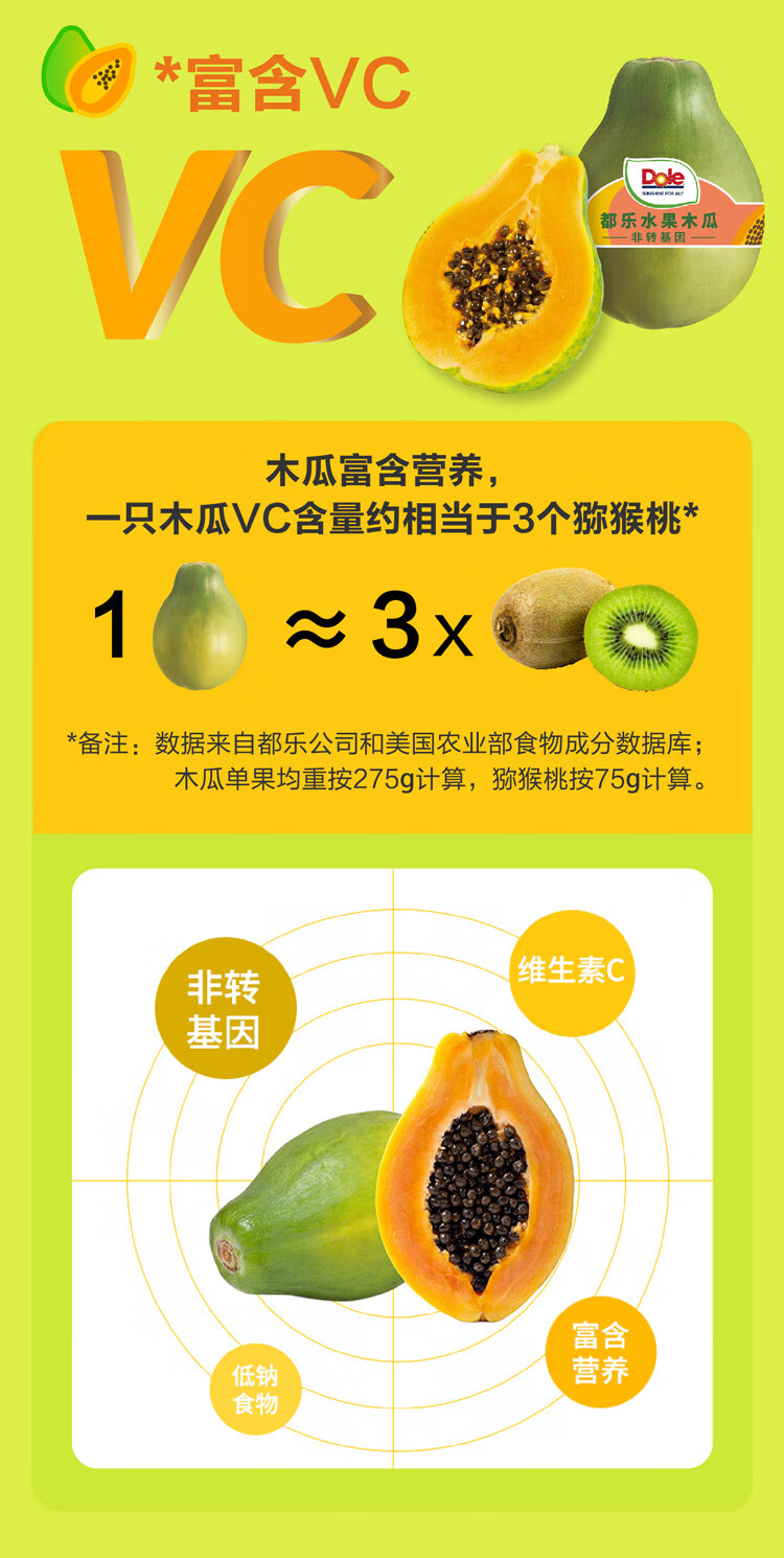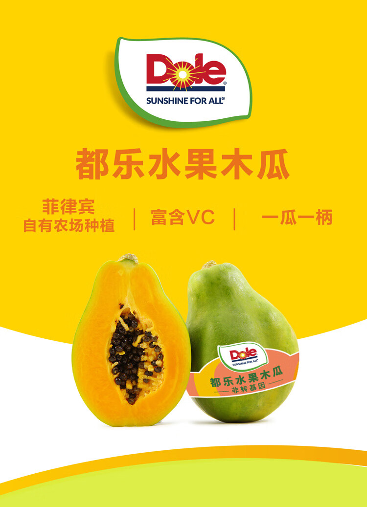 都乐Dole 菲律宾进口 非转基因木瓜4只装 单果重350g起