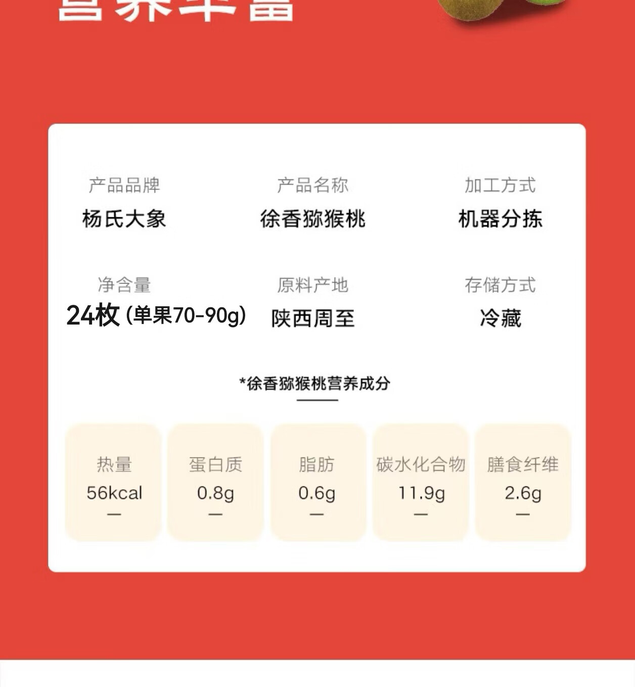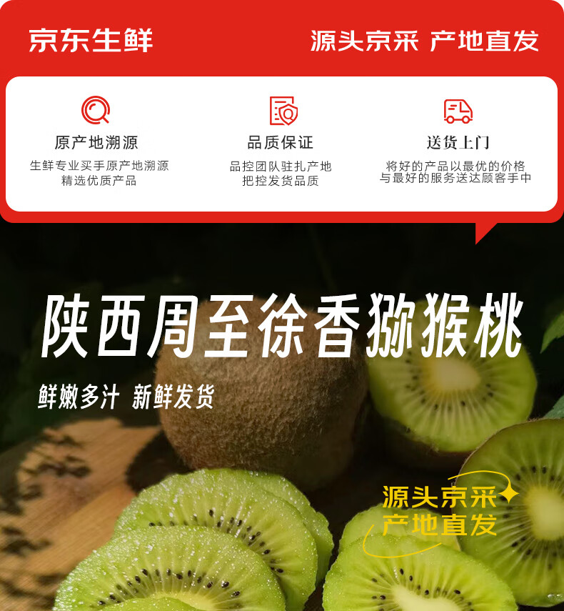 京鲜生 陕西徐香绿心猕猴桃 24粒 单果70-90g 生鲜水果 源头直发