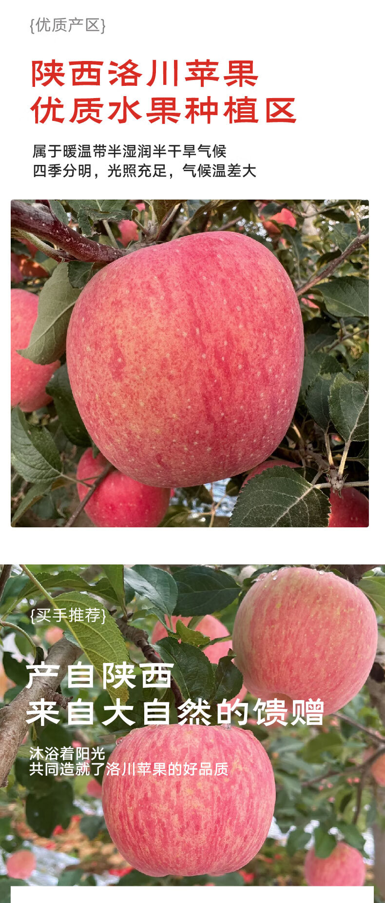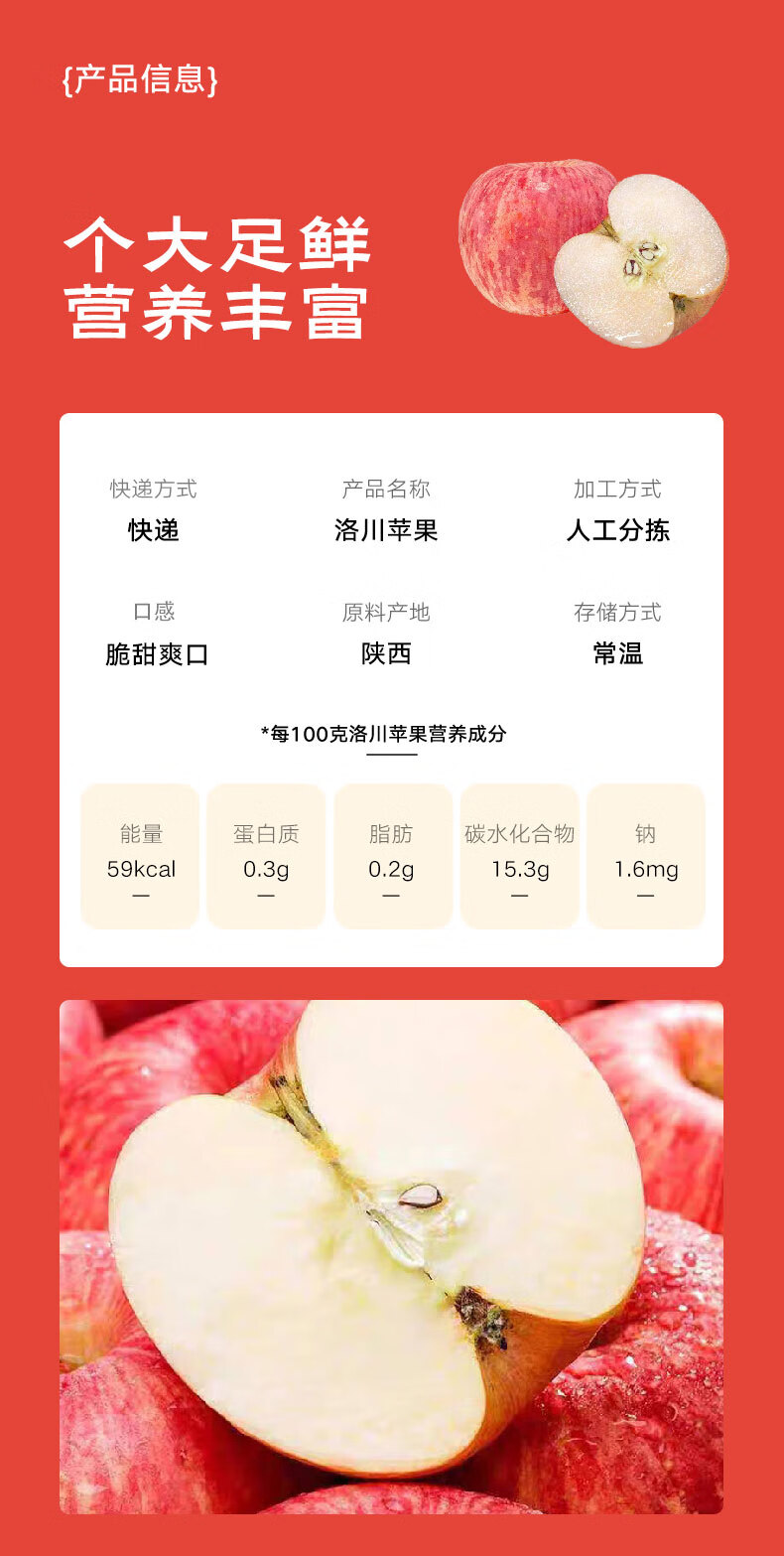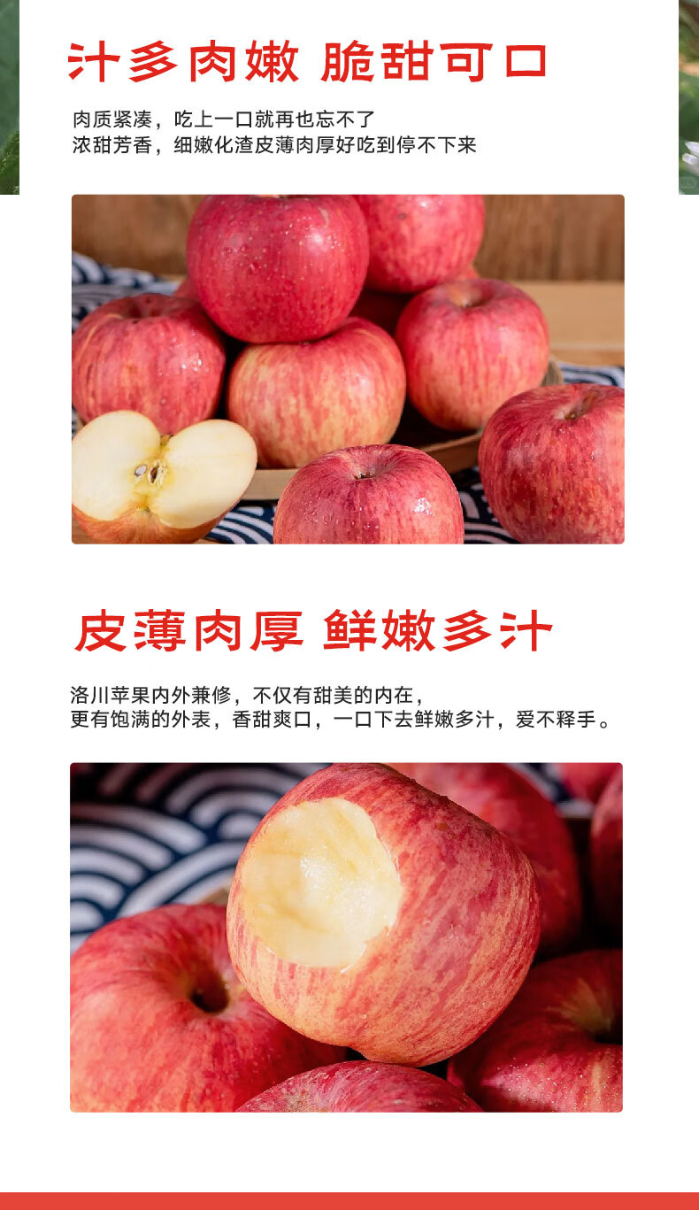 京鲜生陕西洛川苹果红富士4枚装 单果170g+ 源头直发新鲜应季水果
