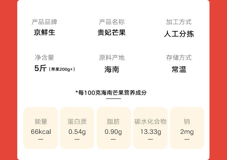 京鲜生 海南树熟贵妃芒 净重4.5斤礼盒装 单果150g起 生鲜水果源头直发