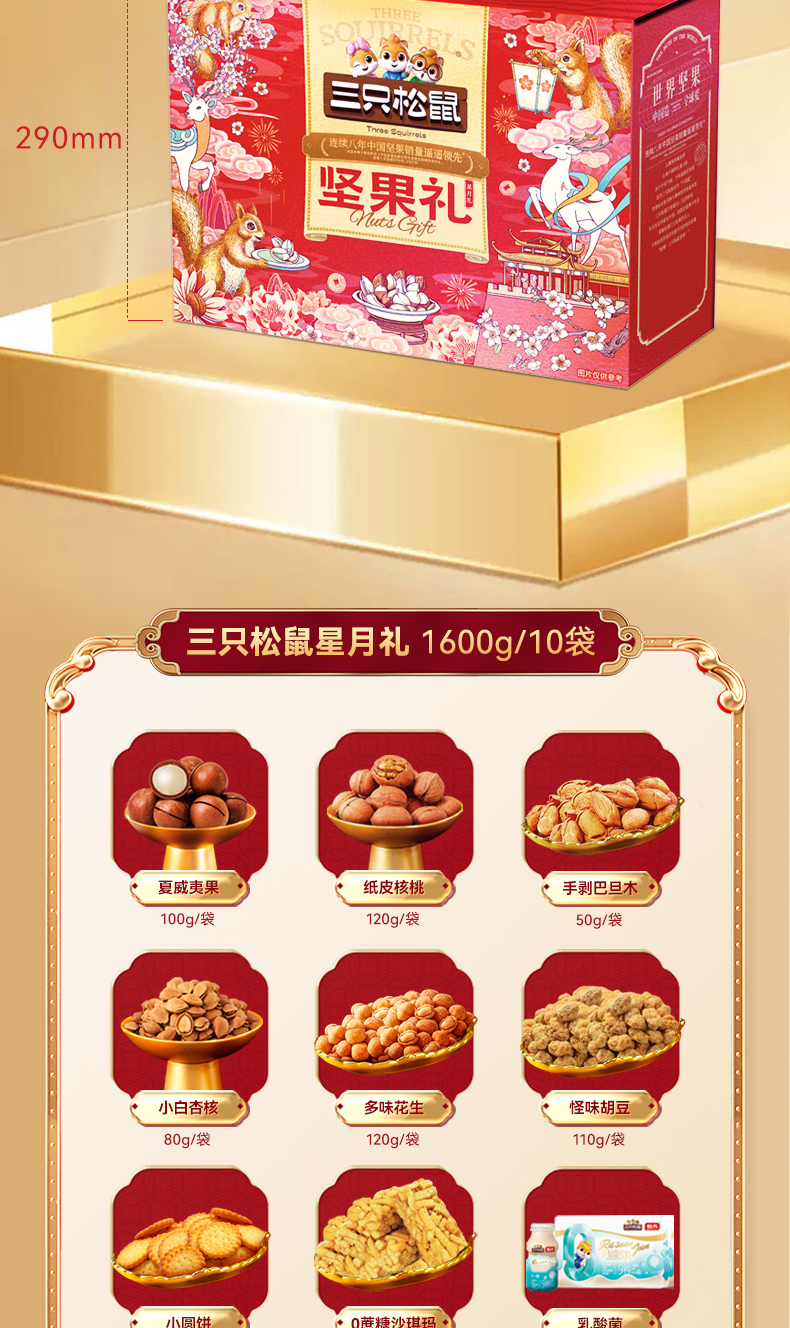 三只松鼠 星月礼 138型1600g/10袋+百事皆宜礼盒1468g+御之味-苏打饼干(松茸火腿) (山姆同款主推)