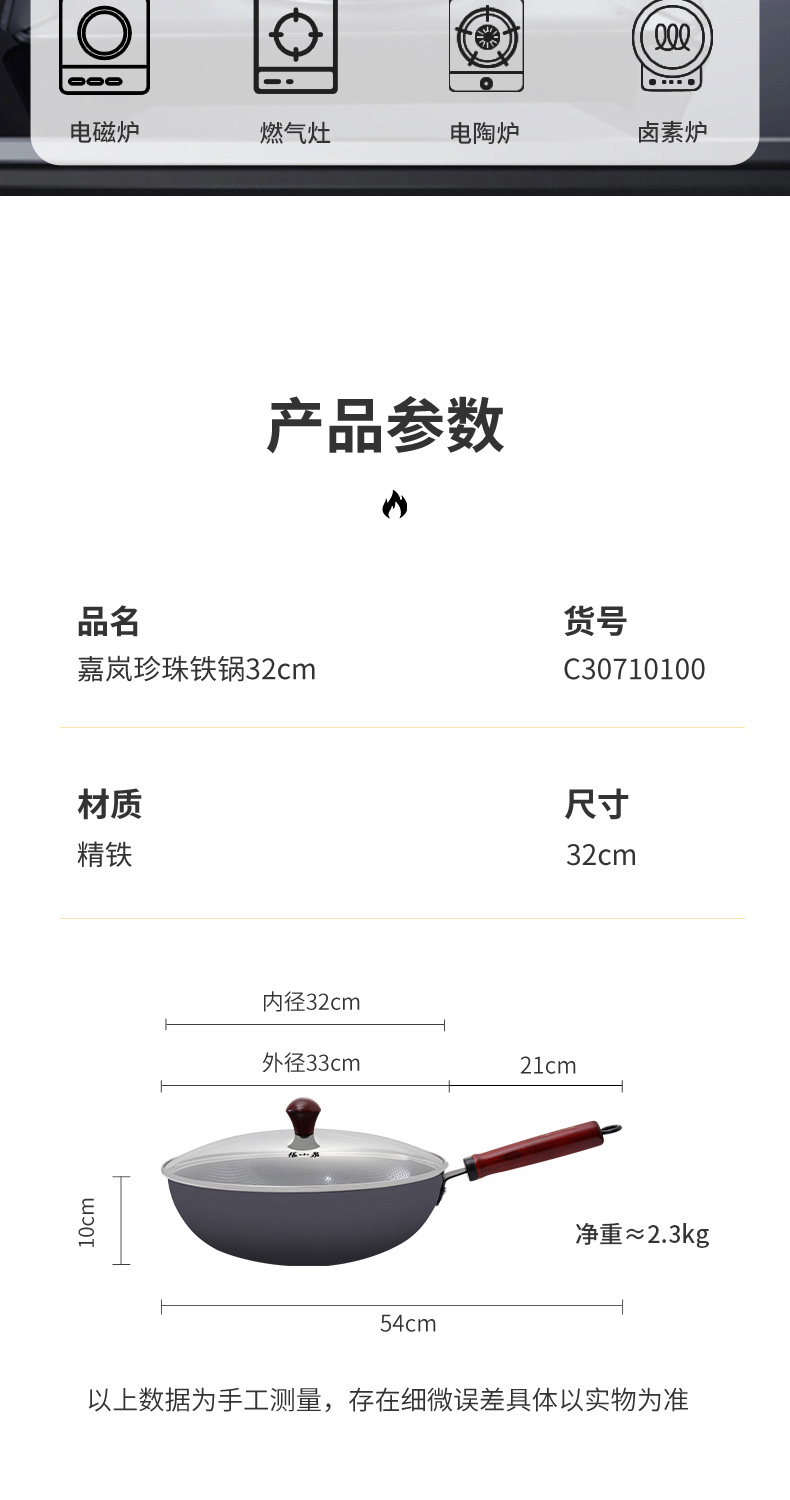 张小泉 C30710100 嘉岚珍珠铁锅+香港斧头牌臻选套装-25FT10