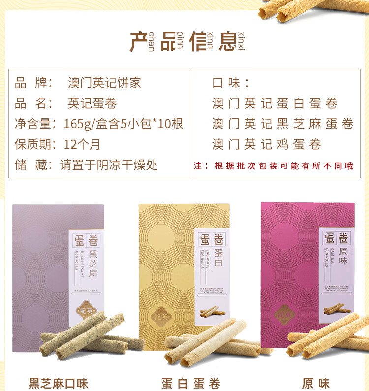 澳门英记鸡蛋卷165g*3盒