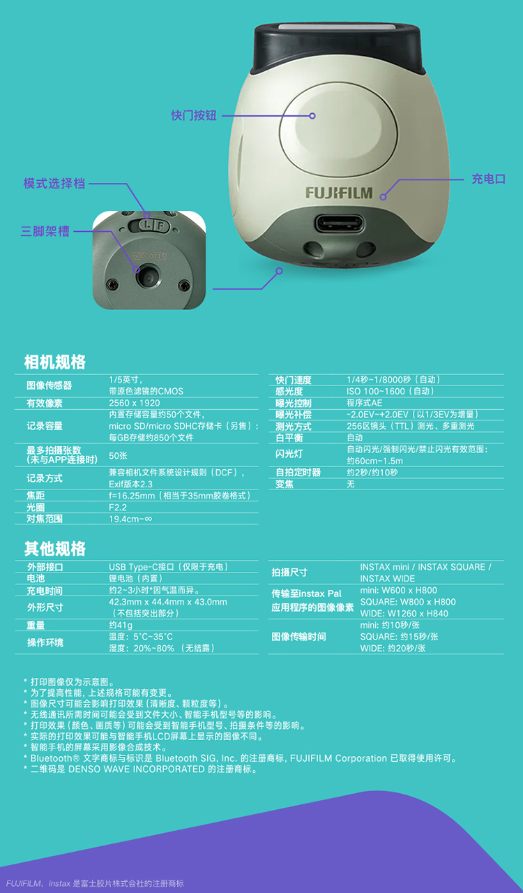 也可用手机通过蓝牙连接instax Pal在APP上进