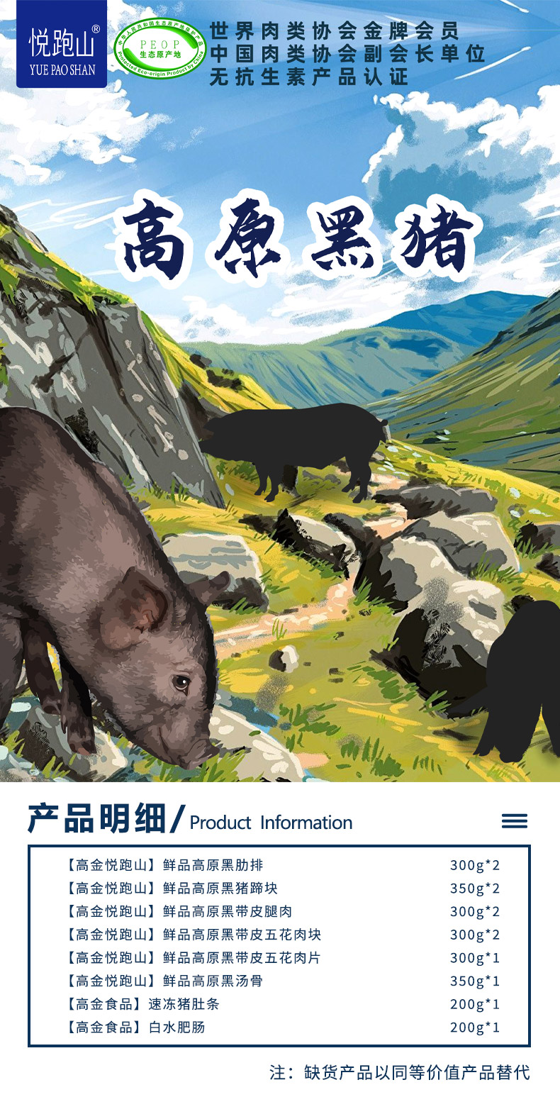 【高金悦跑山】冷鲜黑猪豪华套餐3550g