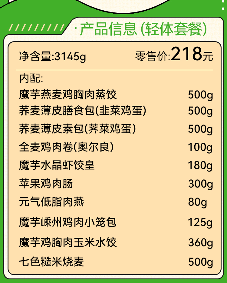 野人日记中式轻卡—轻体套餐3145g