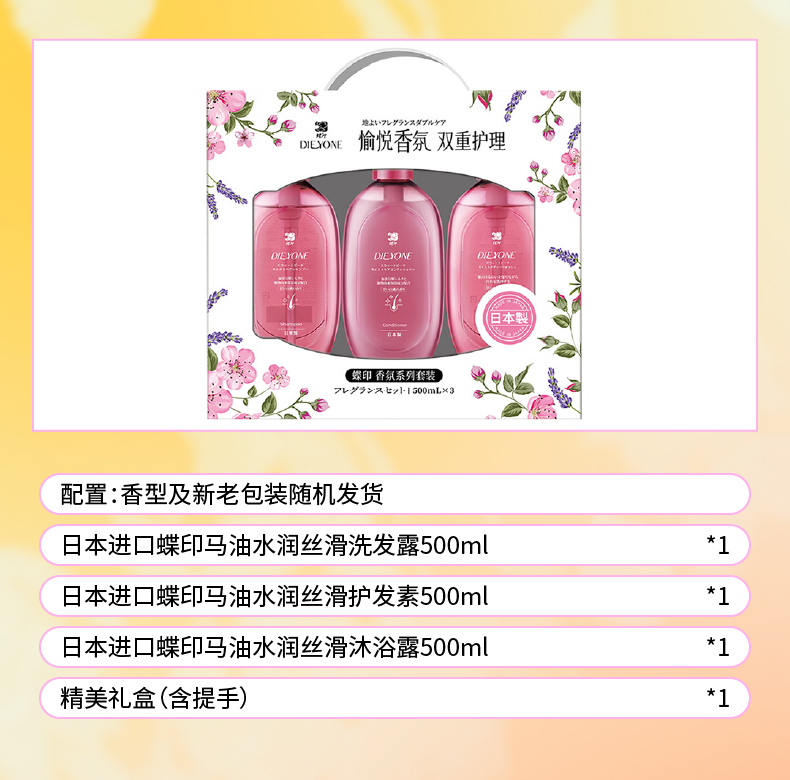 日本进口蝶印水润丝滑洗护礼盒3件套