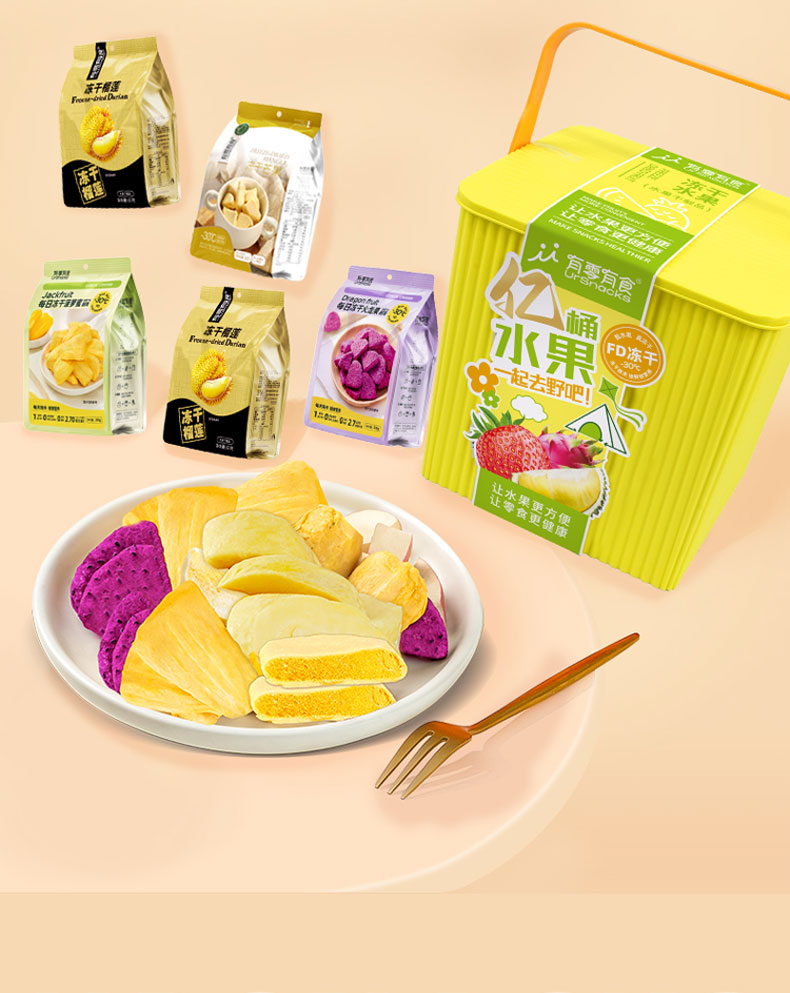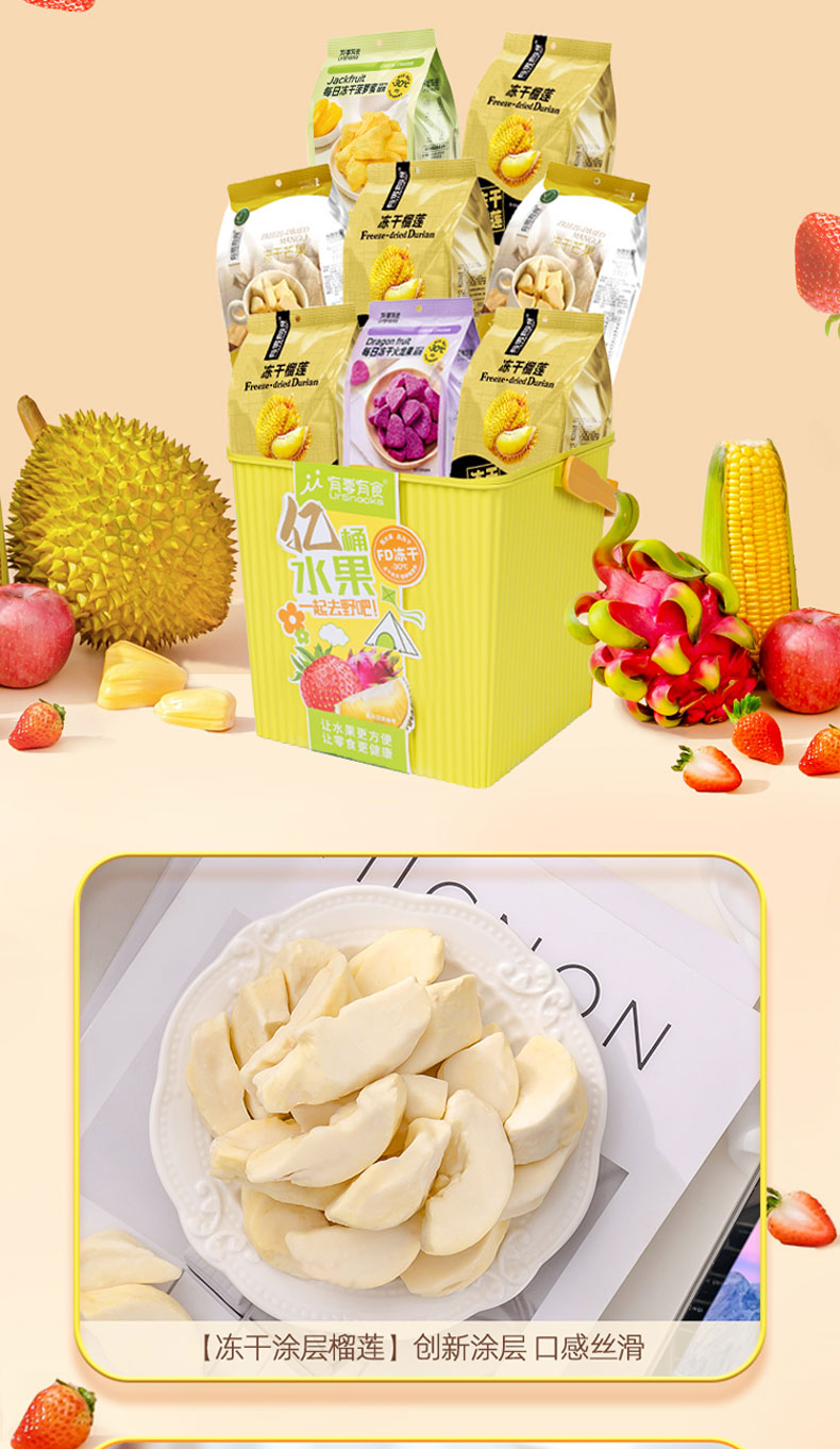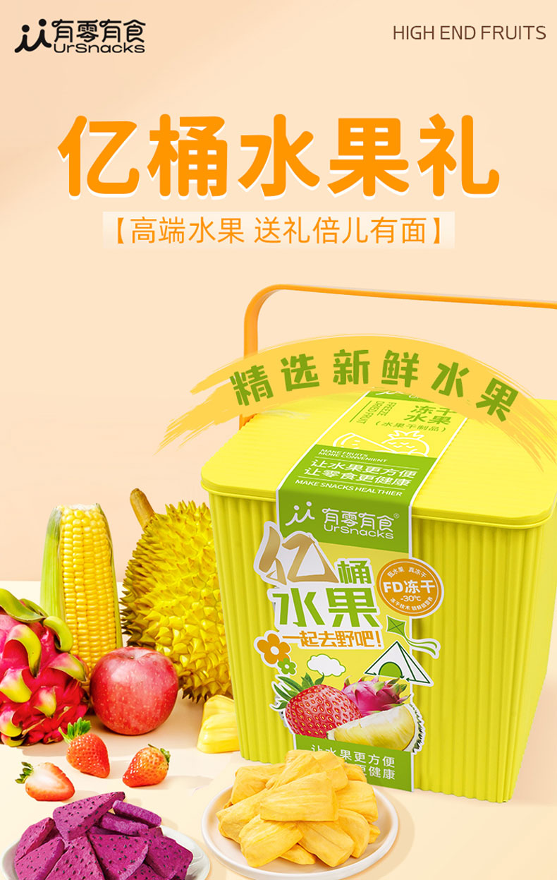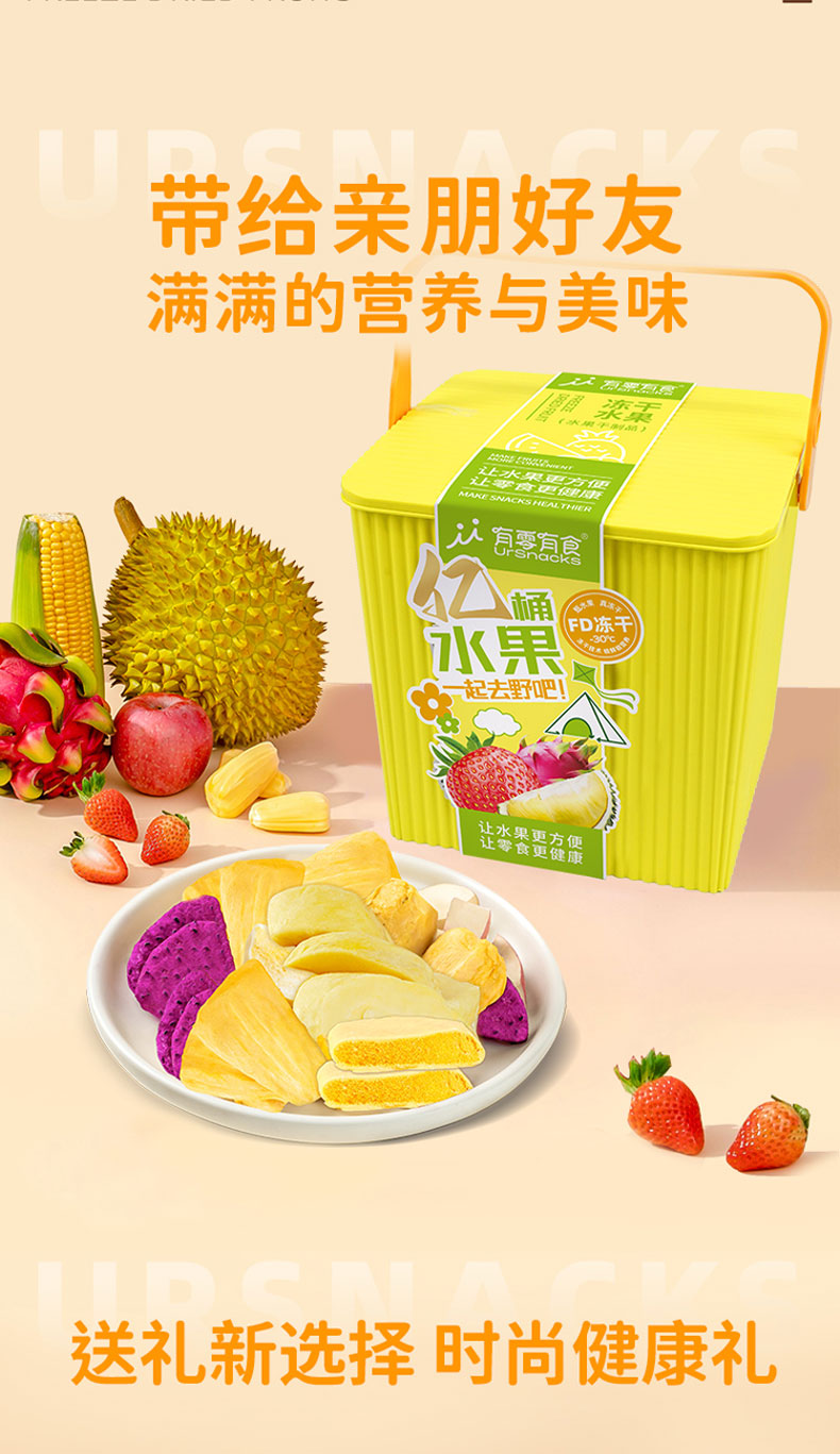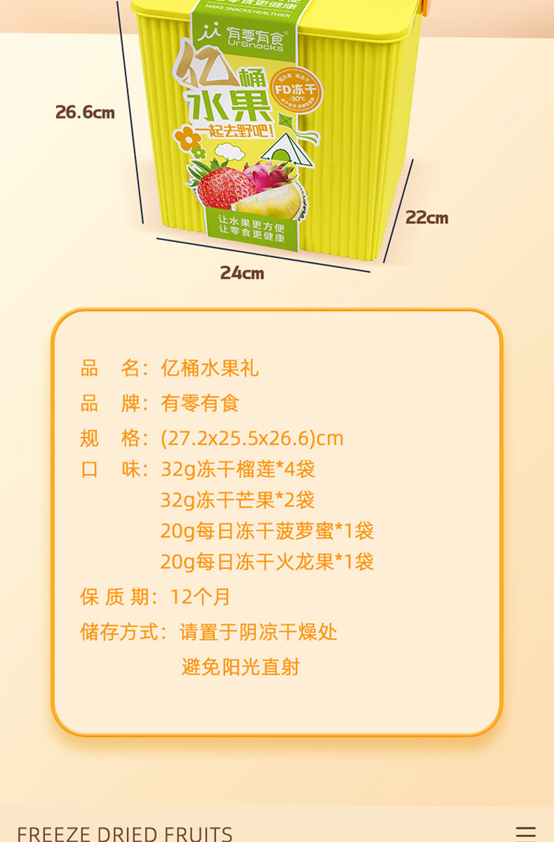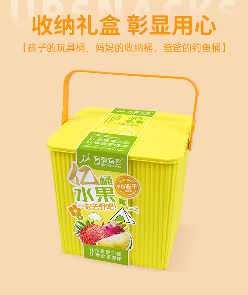 有零有食-232g福运满满水果礼(8袋冻干水果收纳桶装)-黄桶