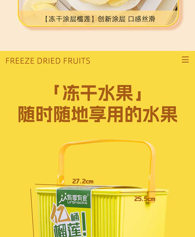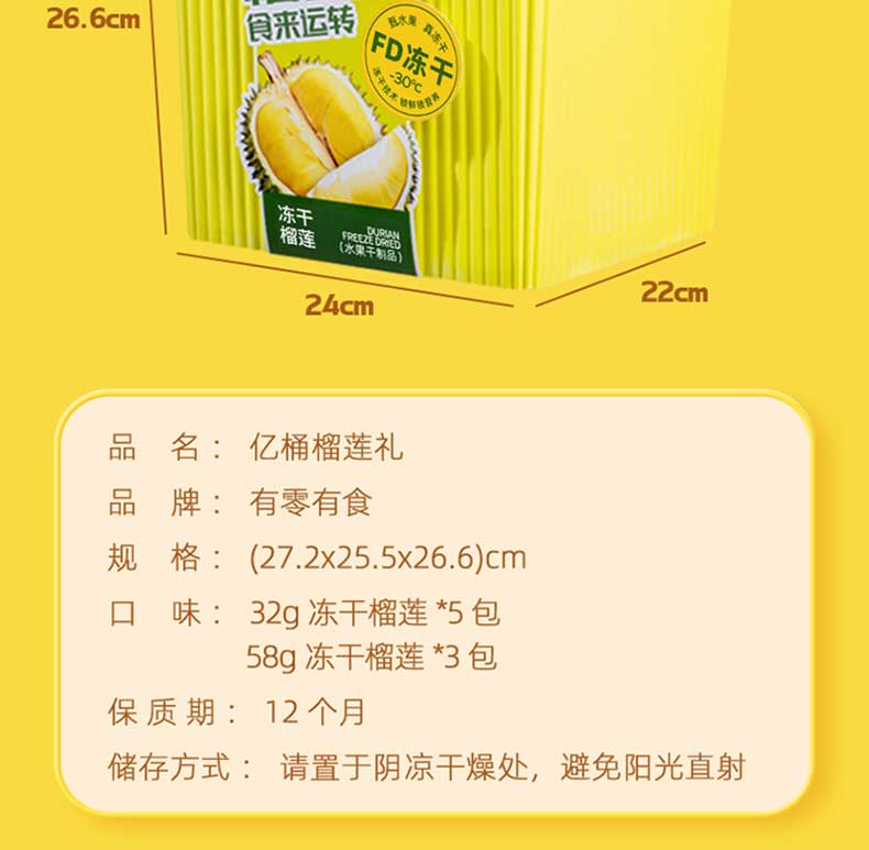 有零有食-334g亿桶榴莲冻干水果收纳桶装