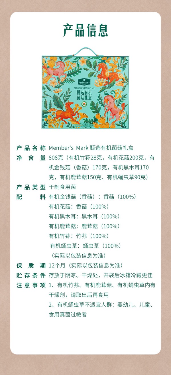 序号:7( 1).山姆MM甄选有机菌菇礼盒808g;2.清美生鲜