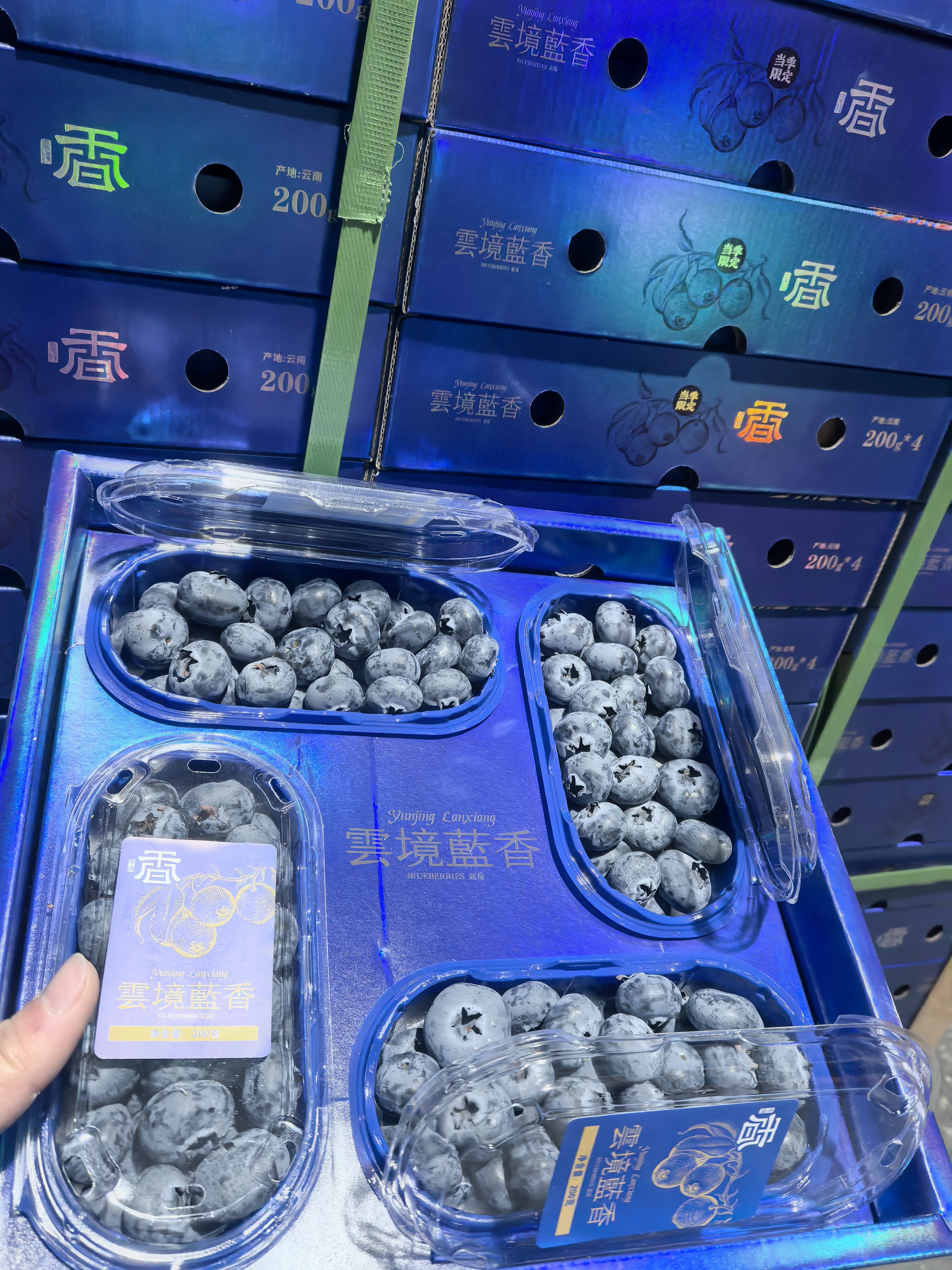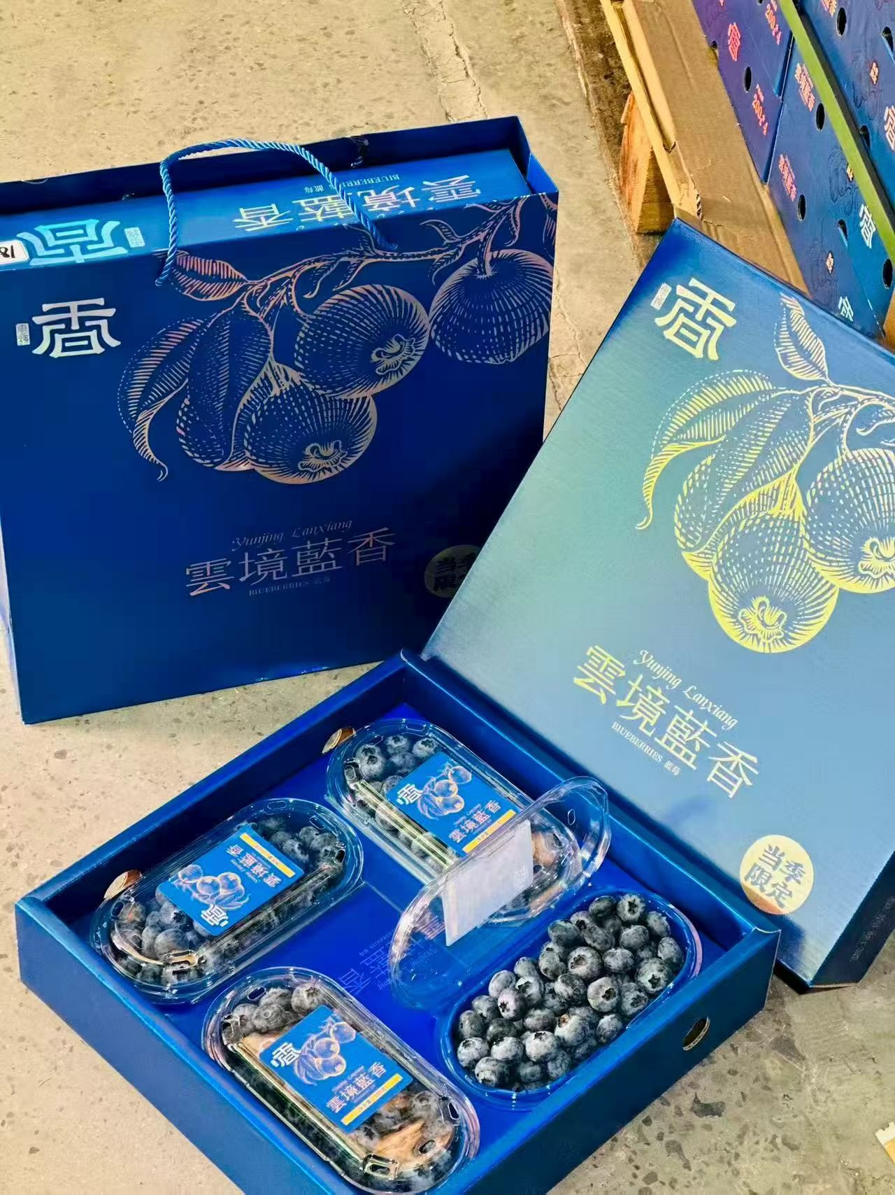 序号:10 (1)云南优质蓝莓22+大果径蓝莓一箱(4盒,一盒200g);;2.春见粑粑柑毛重8斤;3.大别山松林黑猪肉
