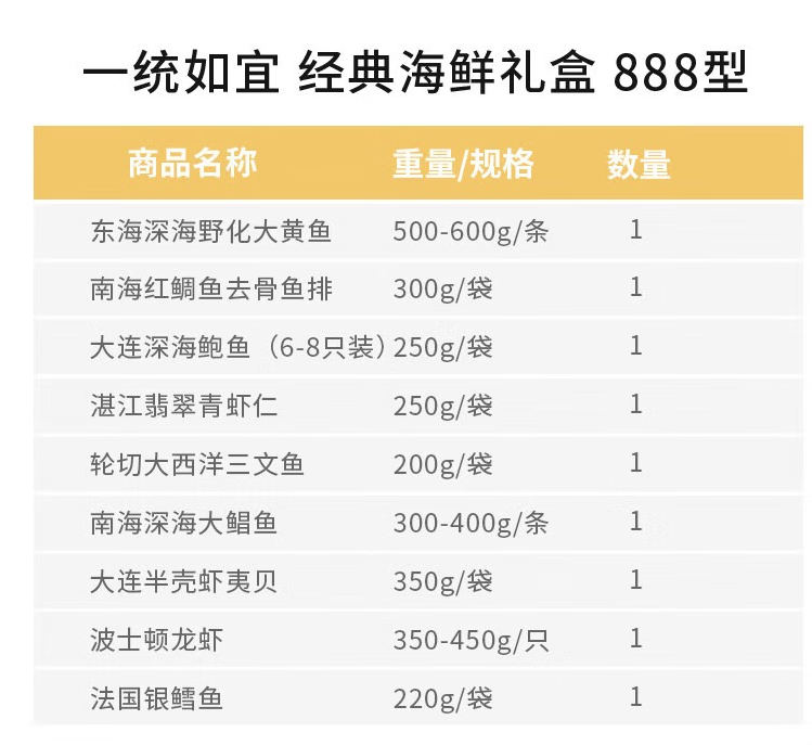 序号:11 一统如宜经典海鲜礼盒888型