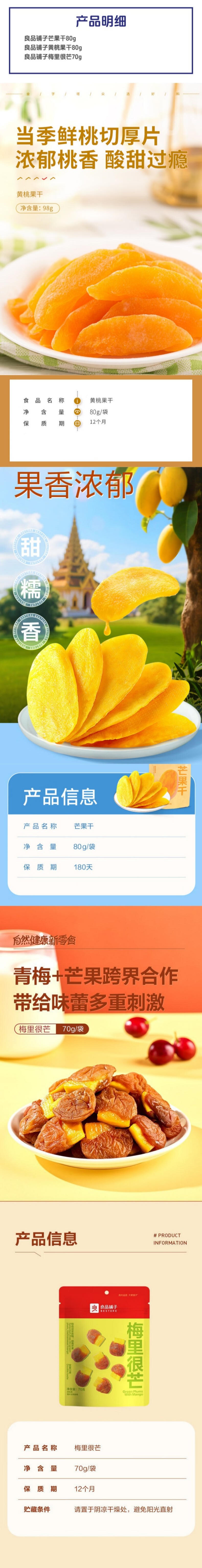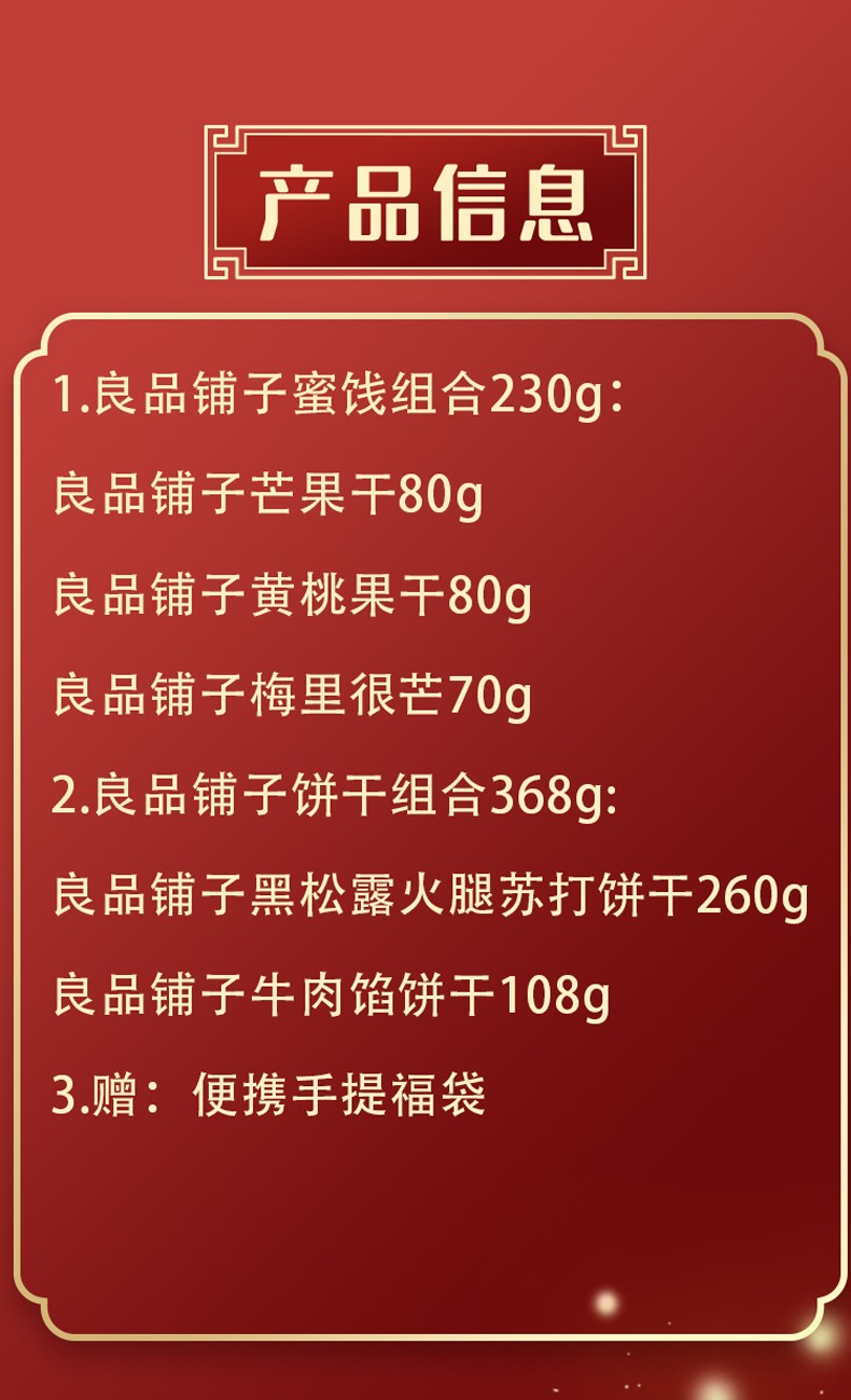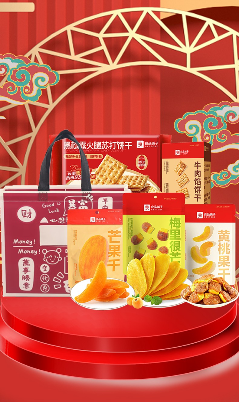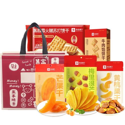 良品铺子 芒果干黄桃干苏打牛肉饼干组合598g