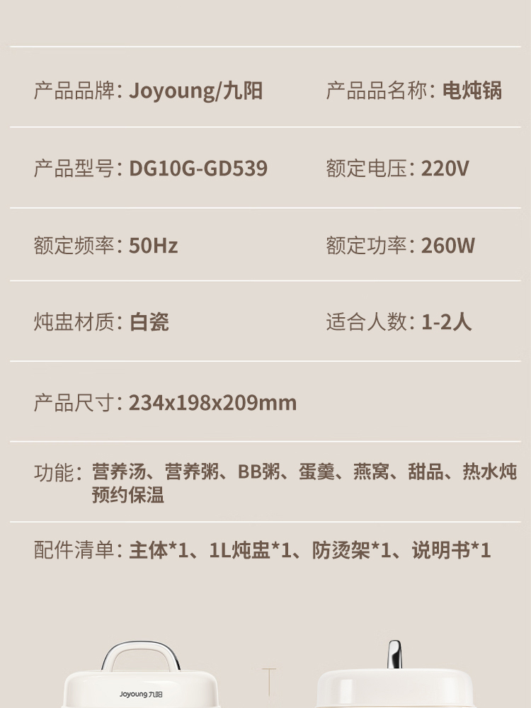 九阳电炖锅 DG10G-GD539