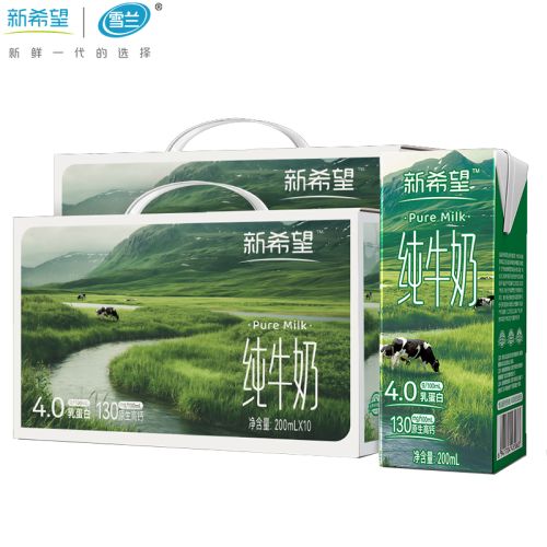 【2箱装】新希望 雪兰4.0g蛋白高原牧场纯牛奶200ml*10盒*2箱