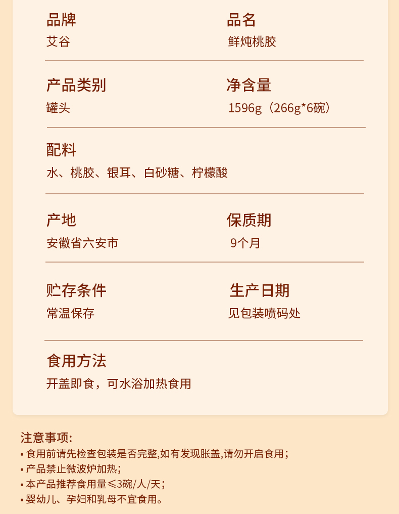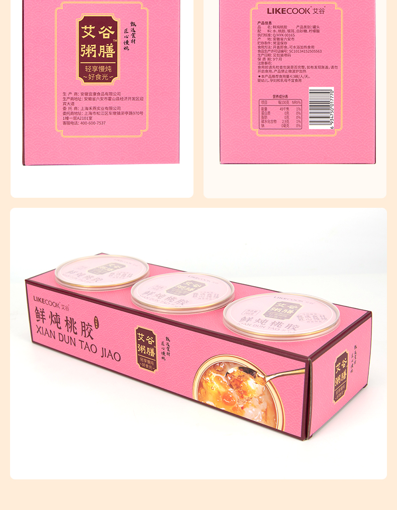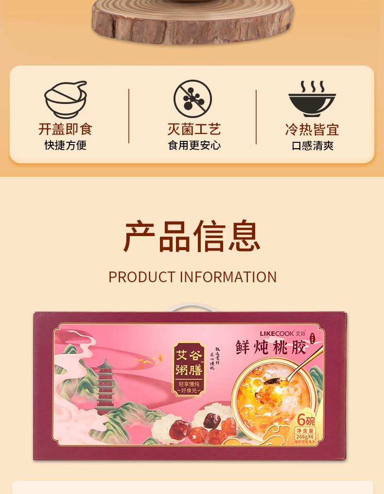 艾谷粥膳鲜炖桃胶266g*6碗